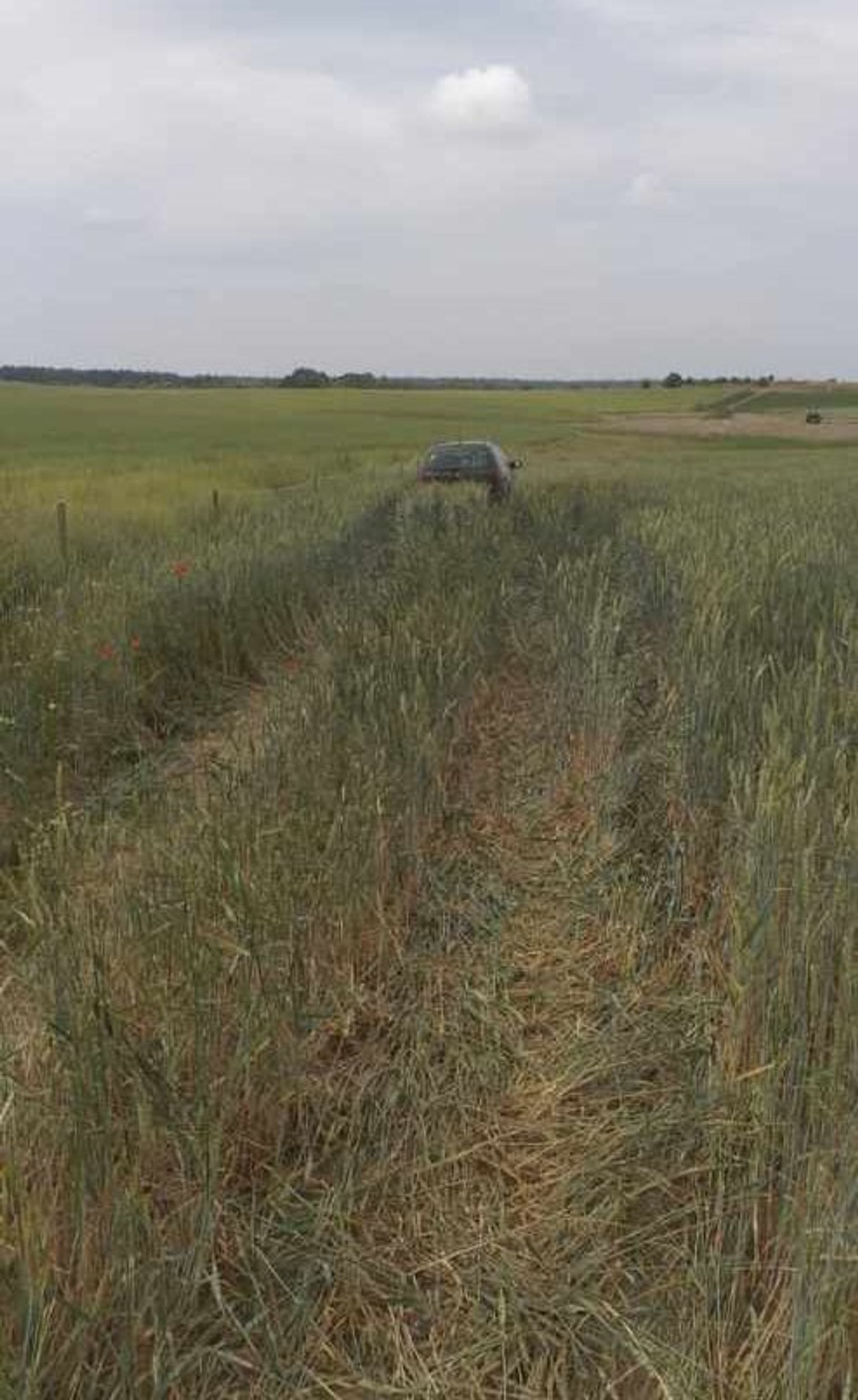Opla omegę policja znalazła na… polu u rolnika w Żelechowie. I tam auto stoi do dziś, choć pościg był przedwczoraj.