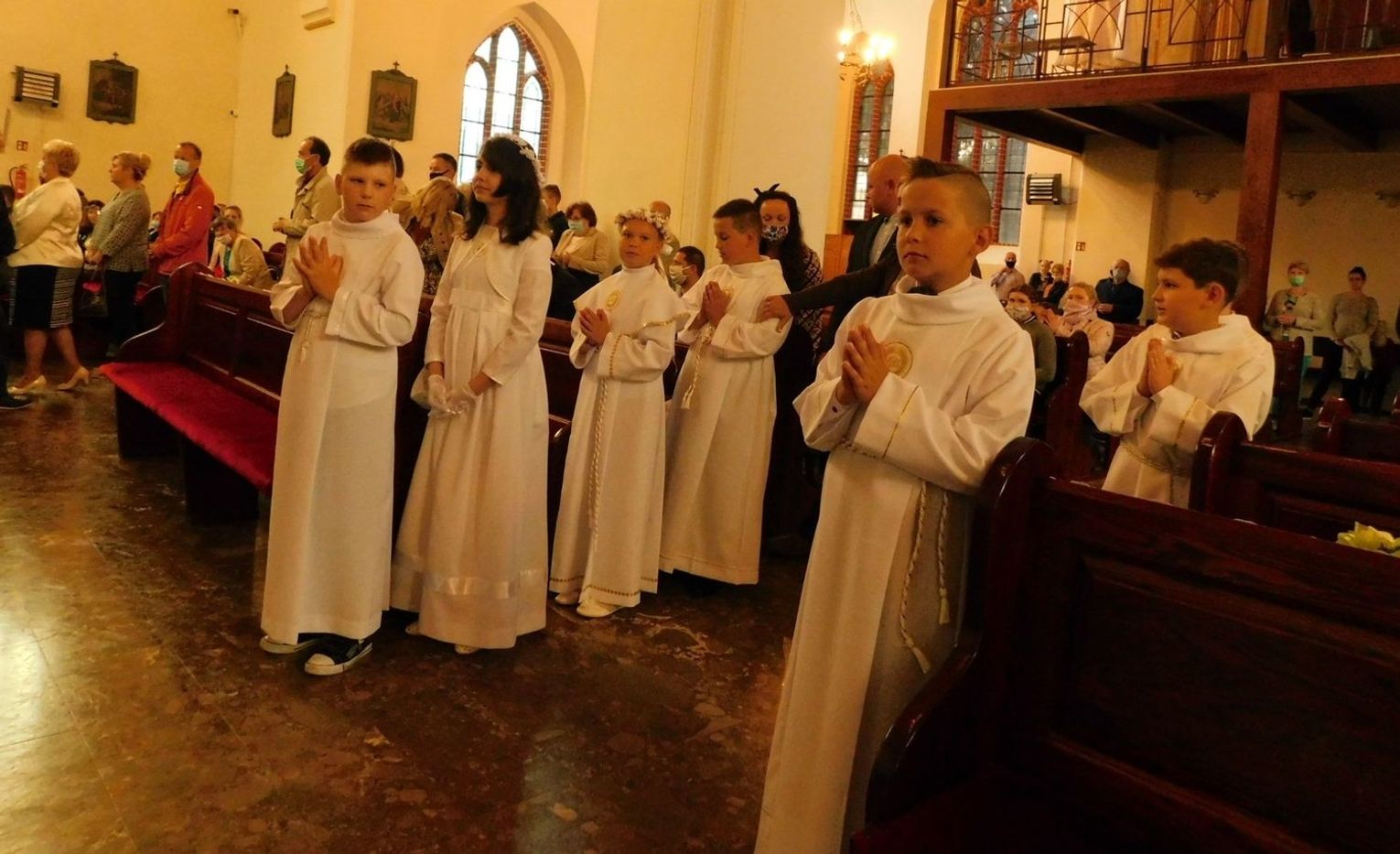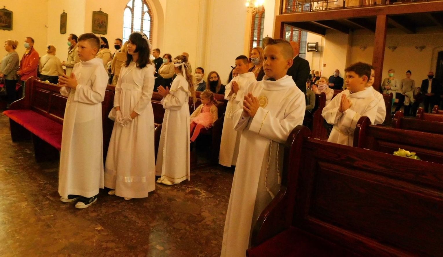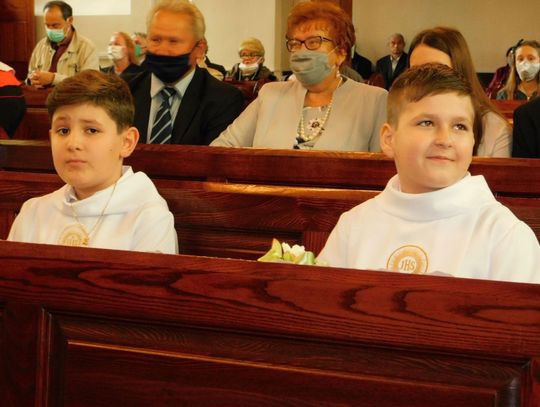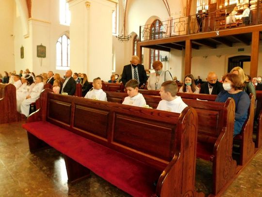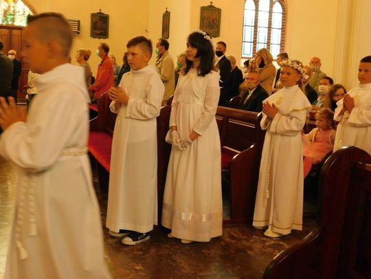 To taka pierwsza komunia święta, która odbywa się „na raty”. Chodziło o to aby nie wszystkie dzieci przystąpiły w tym samym czasie do tego ważnego sakramentu. Termin też się zmienił, ale w tym przypadku udało się zorganizować uroczystość jeszcze w tym roku szkolnym. Rodzice i goście, jeśli nie było przeciwskazań, przyszli w maseczkach. Przecież epidemia koronawirusa się nie skończyła.