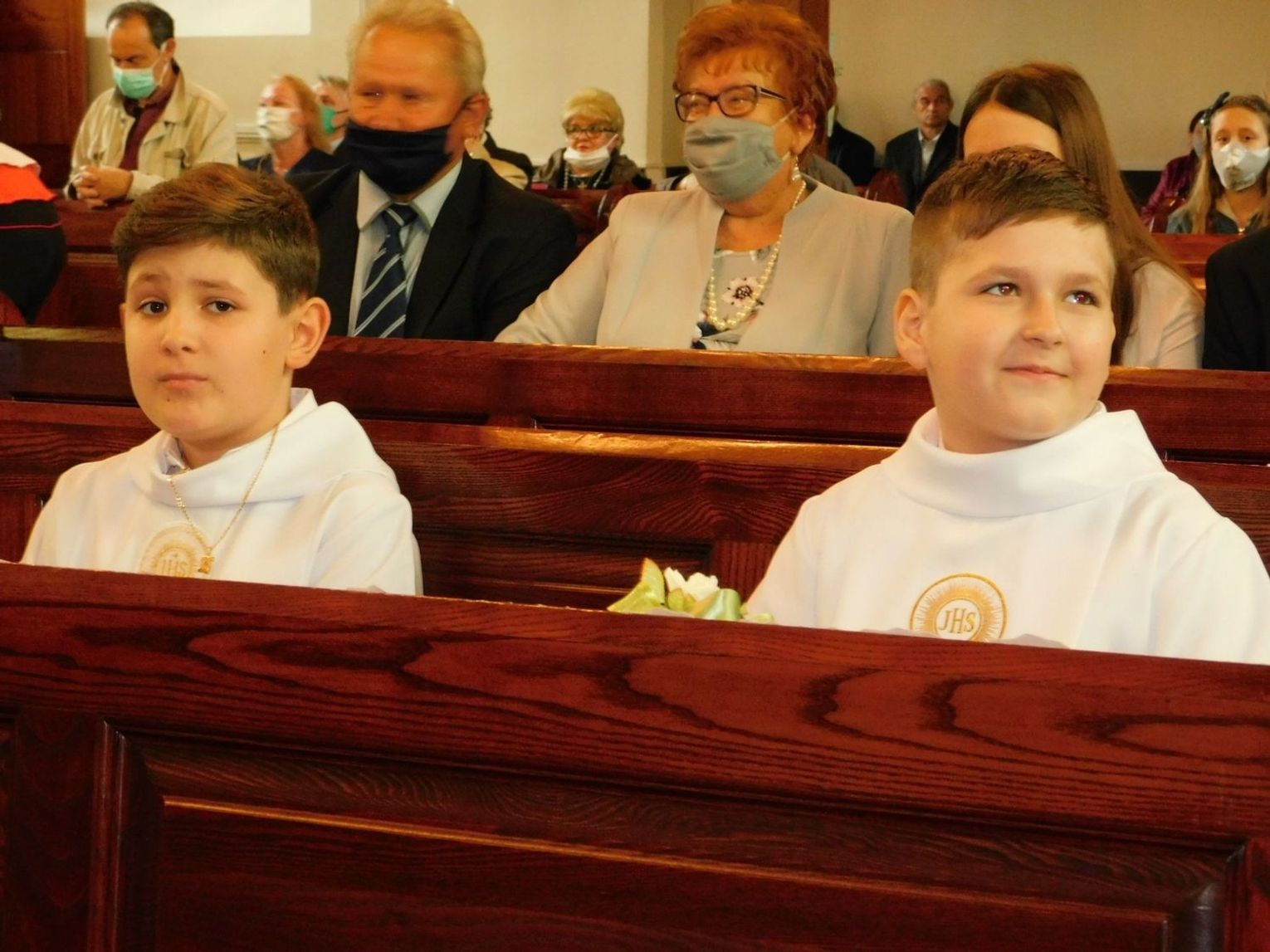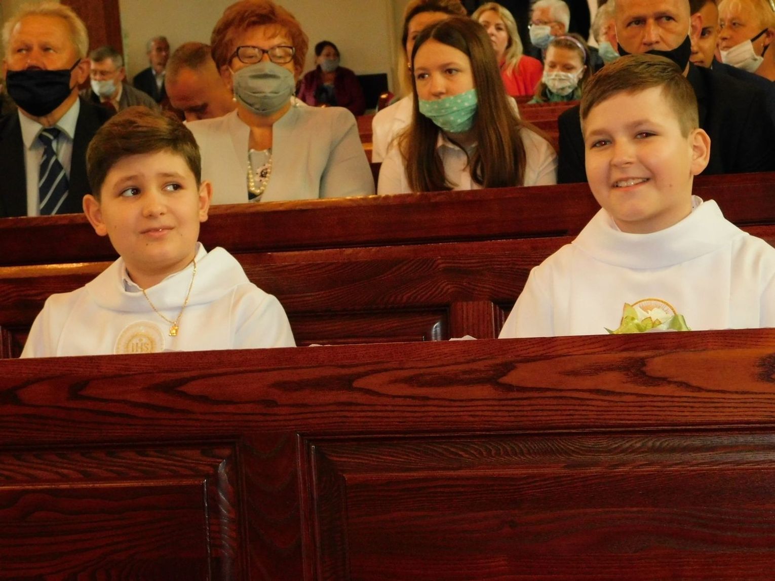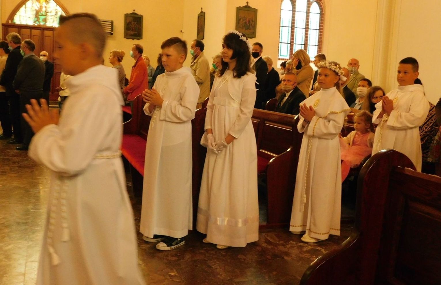 To taka pierwsza komunia święta, która odbywa się „na raty”. Chodziło o to aby nie wszystkie dzieci przystąpiły w tym samym czasie do tego ważnego sakramentu. Termin też się zmienił, ale w tym przypadku udało się zorganizować uroczystość jeszcze w tym roku szkolnym. Rodzice i goście, jeśli nie było przeciwskazań, przyszli w maseczkach. Przecież epidemia koronawirusa się nie skończyła.