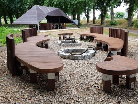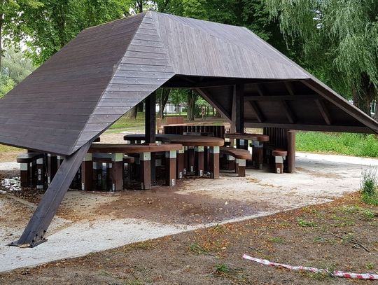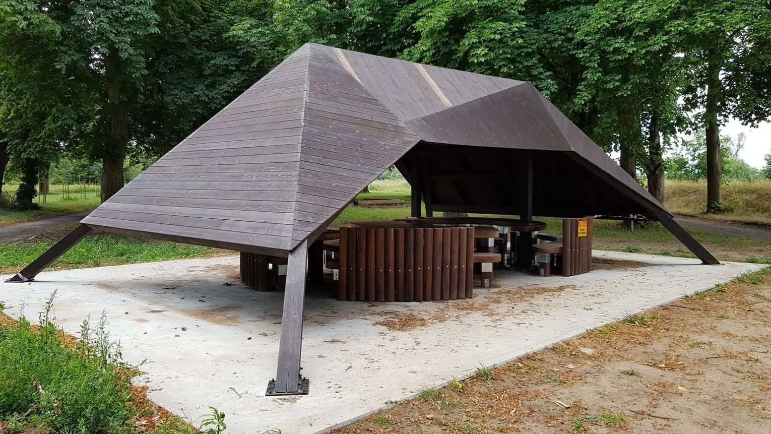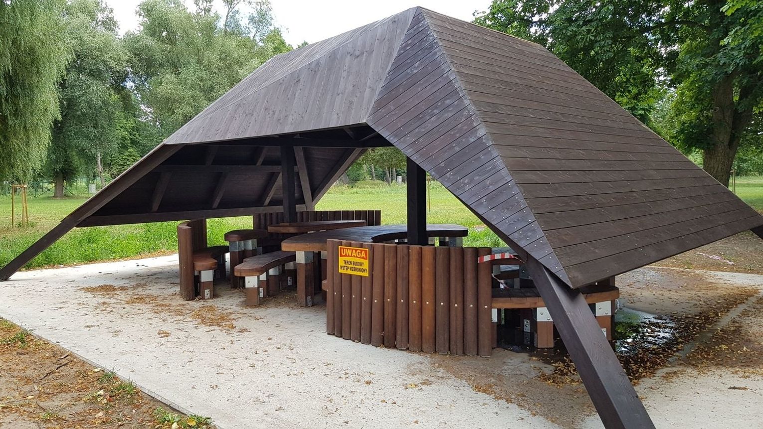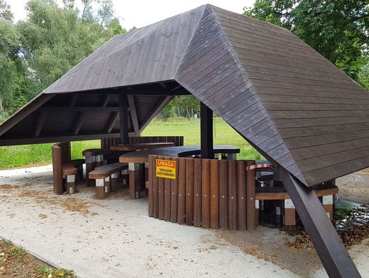 Na szczęście wiata nie jest jeszcze oddana do użytku. Jenak paleniska obok wskazują, że obiekt jest już używany.