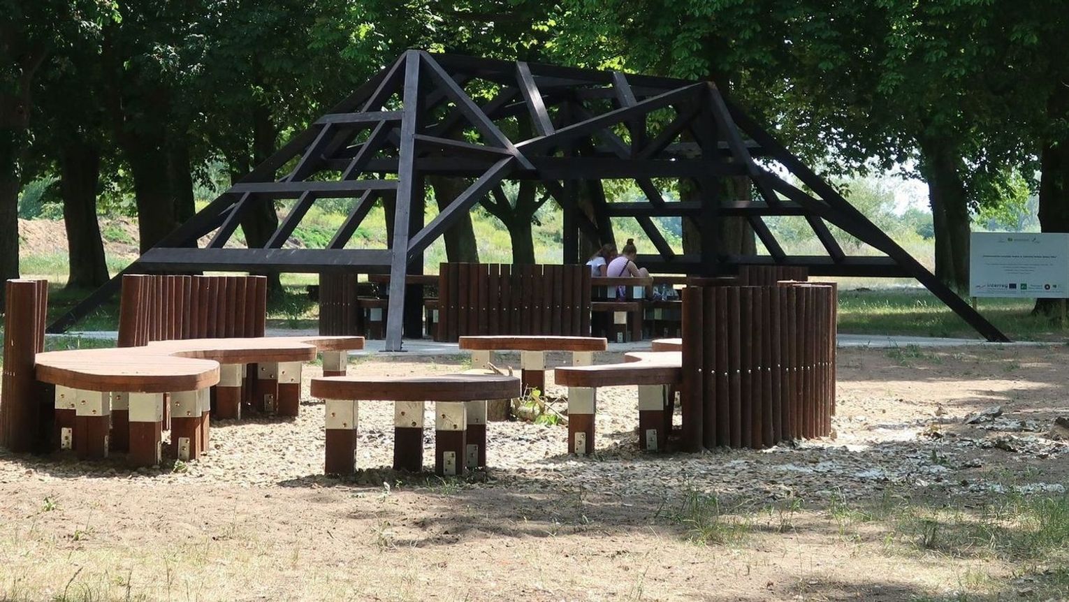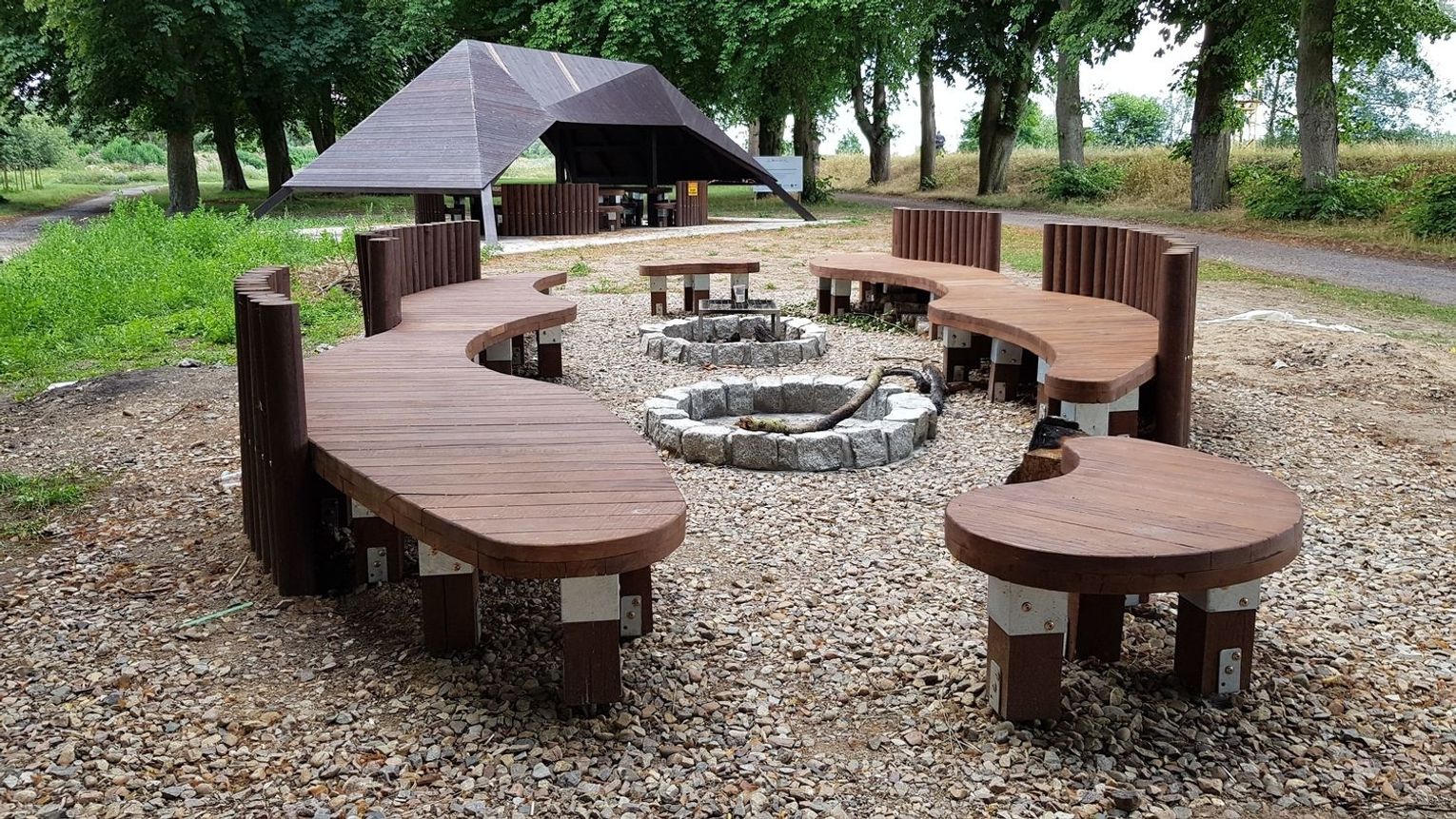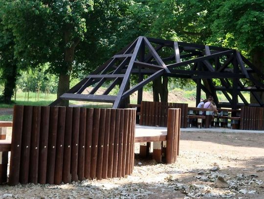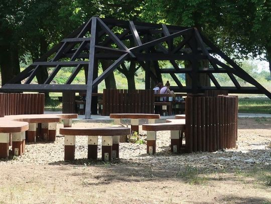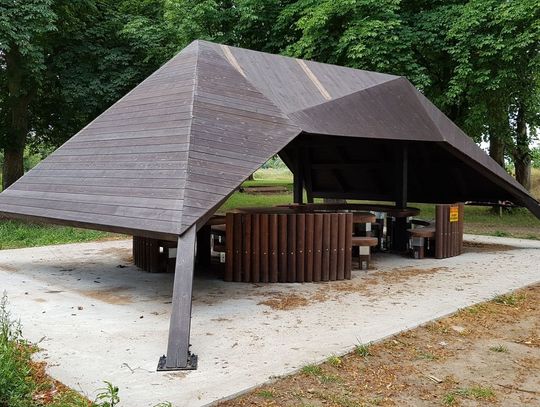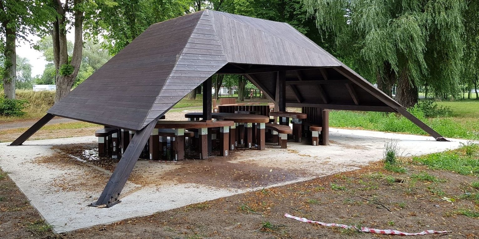 Na szczęście wiata nie jest jeszcze oddana do użytku. Jenak paleniska obok wskazują, że obiekt jest już używany.