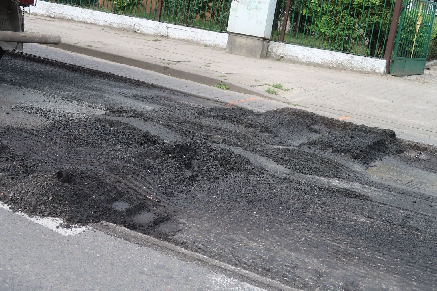 Do idioty – co robią i KTO robi? Burmistrz „nie moja kompetencja”? Muldy zagrażające bezpieczeństwu pieszych i jadących frezują! Bo kałuże chlapały przez chodnik na budynki, debilu!