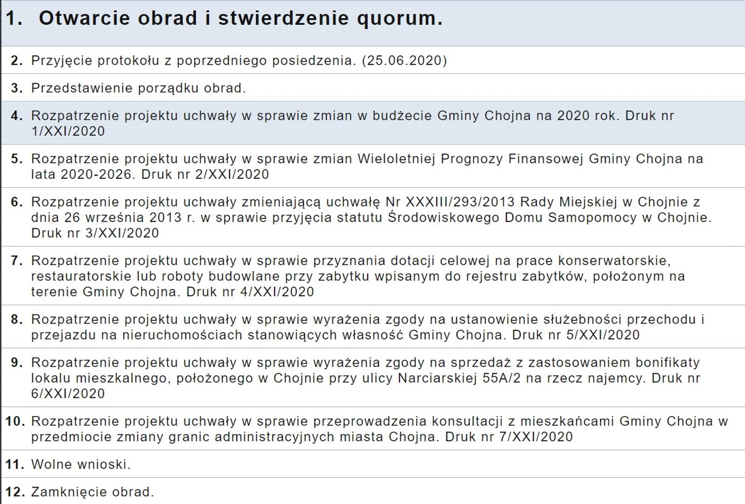 XXI sesja Rady Miejskiej w Chojnie odbędzie się 27 sierpnia 2020 r. (czwartek) o godz. 13.00. Natomiast wspólne posiedzenie Komisji odbędzie się tego samego dnia o godz. 10.00 - sala posiedzeń Urzędu Miejskiego w Chojnie ul. Jagiellońska 2.