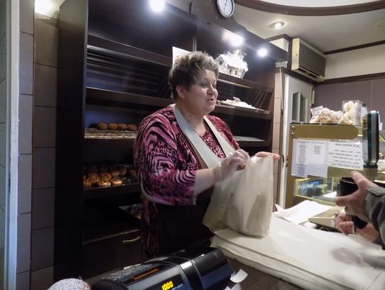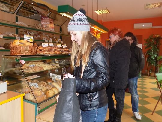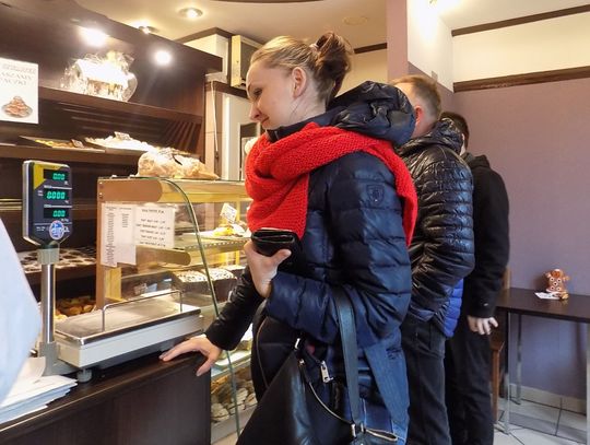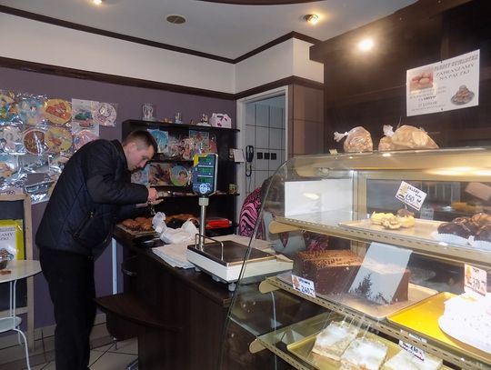 W cukierni przy ul. Kościuszki pani Agnieszka uwija się jak może. Powodzeniem cieszą się pączki nadziewane różą i te z cukrową posypką oraz lukrem.