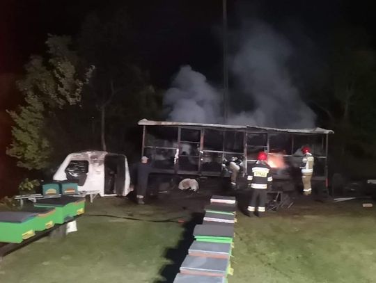 -Po przybyciu na miejsce zdarzenia i przeprowadzeniu rozpoznania strażacy stwierdzili pożar przyczepy z pasieką oraz przyczepy kempingowej. Działania strażaków polegały na zabezpieczeniu miejsca zdarzenia i ugaszeniu pożaru poprzez podanie 2 prądów wody w natarciu. Następnie przy pomocy podręcznego sprzętu burzącego wyrzucono spalone rzeczy które znajdowały się w przyczepie kempingowej oraz przyczepie z pasieką – relacjonuje strażak z Komendy Powiatowej Państwowej Straży Pożarnej w Gryfinie.
