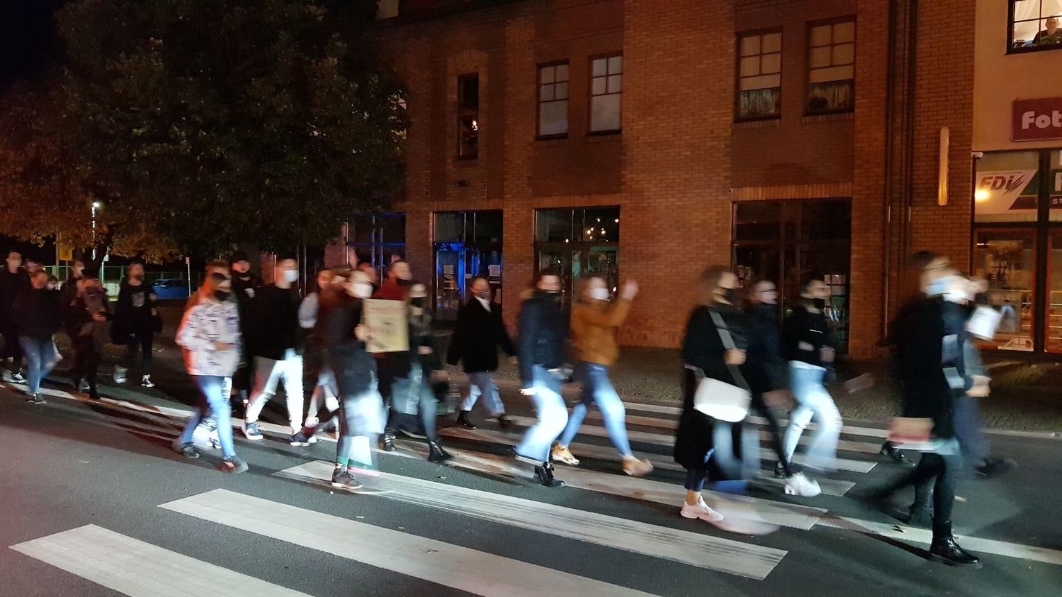 Protestujący zebrali się koło siedziby PiS przy ul. Jagiellońskiej. Manifestujący spacerowali różnymi ulicami: najpierw Jagiellońską, potem Kościuszki, Ogrodową, Jagiellońską , Chrobrego, Młyńską, nieco Szczecińską, i z powrotem, Ba ltycką, Jagiełły, Chrobrego itd..