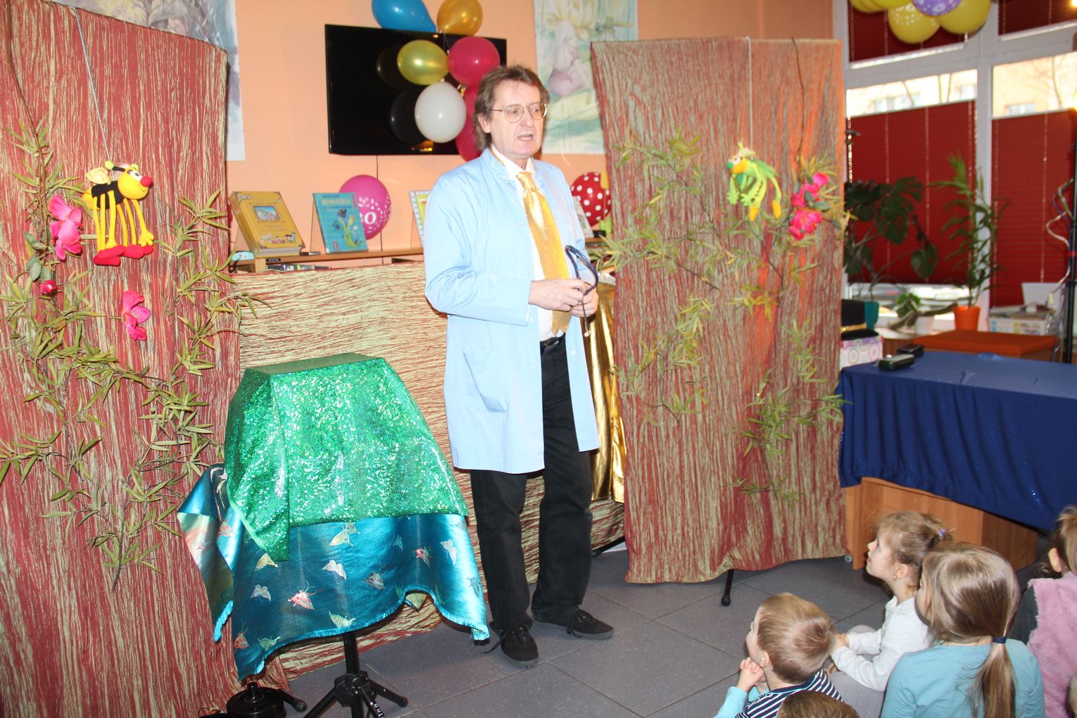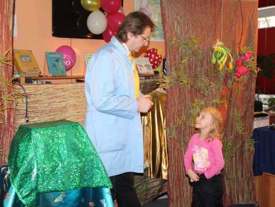 „Urodzinki w bibliotece” to zaproszenie grup przedszkolnych: „Króliczków” z Przedszkola nr 2 i…”Króliczków” z Przedszkola nr 3 w Gryfinie w podróż do „ Urodzinowego bajkowego ogrodu”. Spektakl przeniósł widzów w świat pełen wierszowanych historii opowiedzianych za pomocą śpiewu, teatru paluszkowego, recytacji.