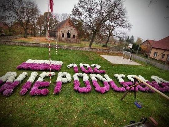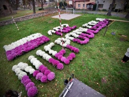 Z chryzantem ułożono nawet napis z okazji 102. rocznicy odzyskania przez Polskę niepodległości.