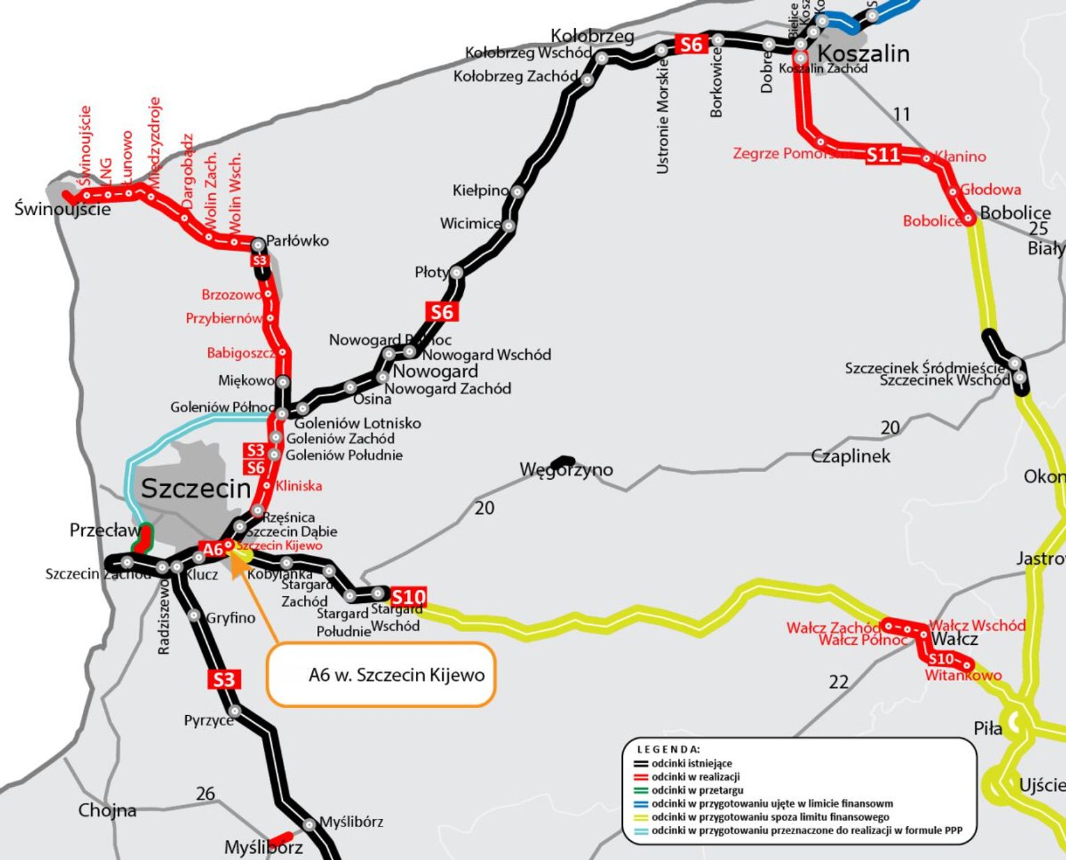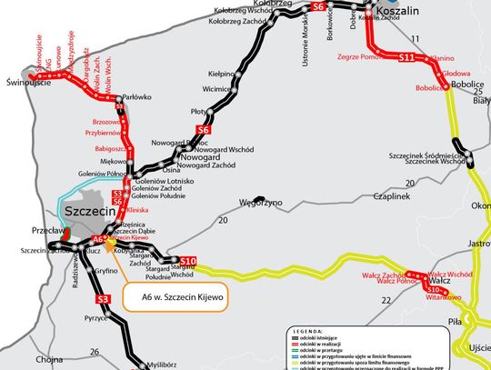 Obecnie trwa przetarg na ostatni, trzeci etap prac na węźle. W listopadzie poznaliśmy oferty wykonawców, które obecnie są sprawdzane. Roboty obejmą przede wszystkim wykonanie nowego wiaduktu węzła na jezdni DK10 w stronę Stargardu, przebudowę jezdni autostrady A6 oraz pozostałych do wykonania łącznic i jezdni zbiorczo-rozprowadzających w ciągu autostrady A6. Będzie to komplet prac niezbędnych do zakończenia przebudowy węzła. Rozpoczęcia robót dla tego etapu prac można spodziewać się na wiosnę przyszłego roku.