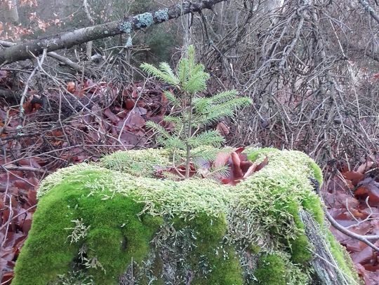 Wydawałoby się, iż spadające nasionka skazane są na pewne obumarcie, mają jednak tak ogromną siłę przetrwania, że wyrastają z nich drzewka w różnych nawet najbardziej nietypowych miejscach np. w pękniętych głazach, kamieniach, pniakach po ściętych drzewach czy jak na załączonych zdjęciach w „leśnych ekologicznych doniczkach”.