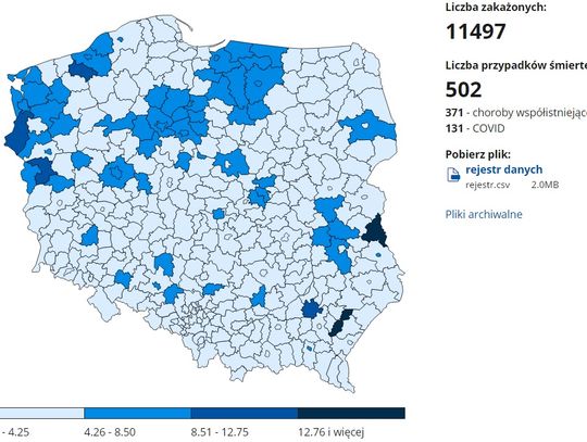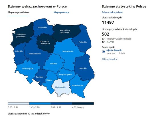 Czyli podsumowując ostatnie dane w Polsce przybyło 11 497 przypadków.