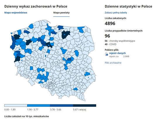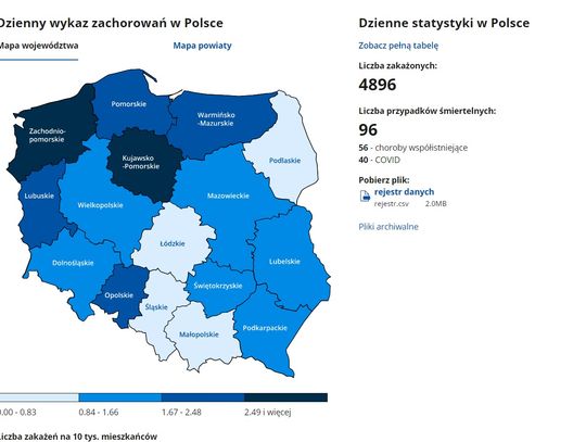 W kraju mamy 4 896 nowych i potwierdzonych przypadków zakażenia koronawirusem z województw: