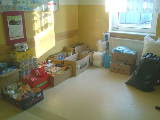 Do szkoły zaczęły spływać dary: puszki z mokrą karmą dla psów, makaron, ryż, ręczniki papierowe, gumowe podkłady, płyny do czyszczenia podłóg, worki foliowe 240 litrów, koce, ręczniki, itp. Na nasz apel nie pozostały obojętne także inne gryfińskie placówki i sklepy.