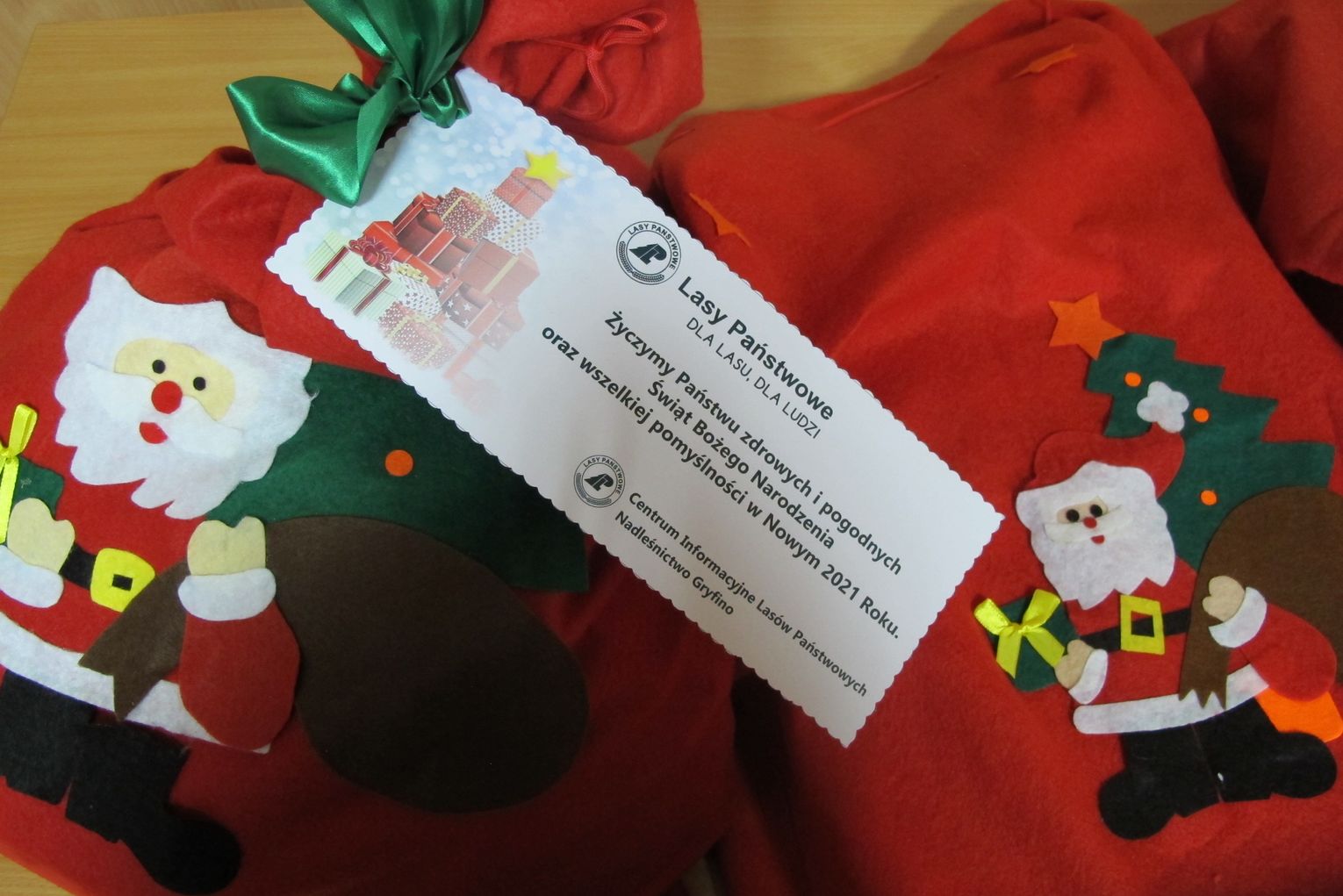 Na ręce p. Justyny Krakowiak-Misiuny - dyrektor Zespołu Szkół Szpitalnych w Szczecinie przekazana została również wielka paczka od napotkanego w lesie Świętego Mikołaja, zawierająca mnóstwo przyborów i materiałów szkolnych, niezbędnych uczniom do kolejnych wspaniałych plastycznych dokonań.