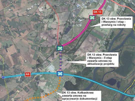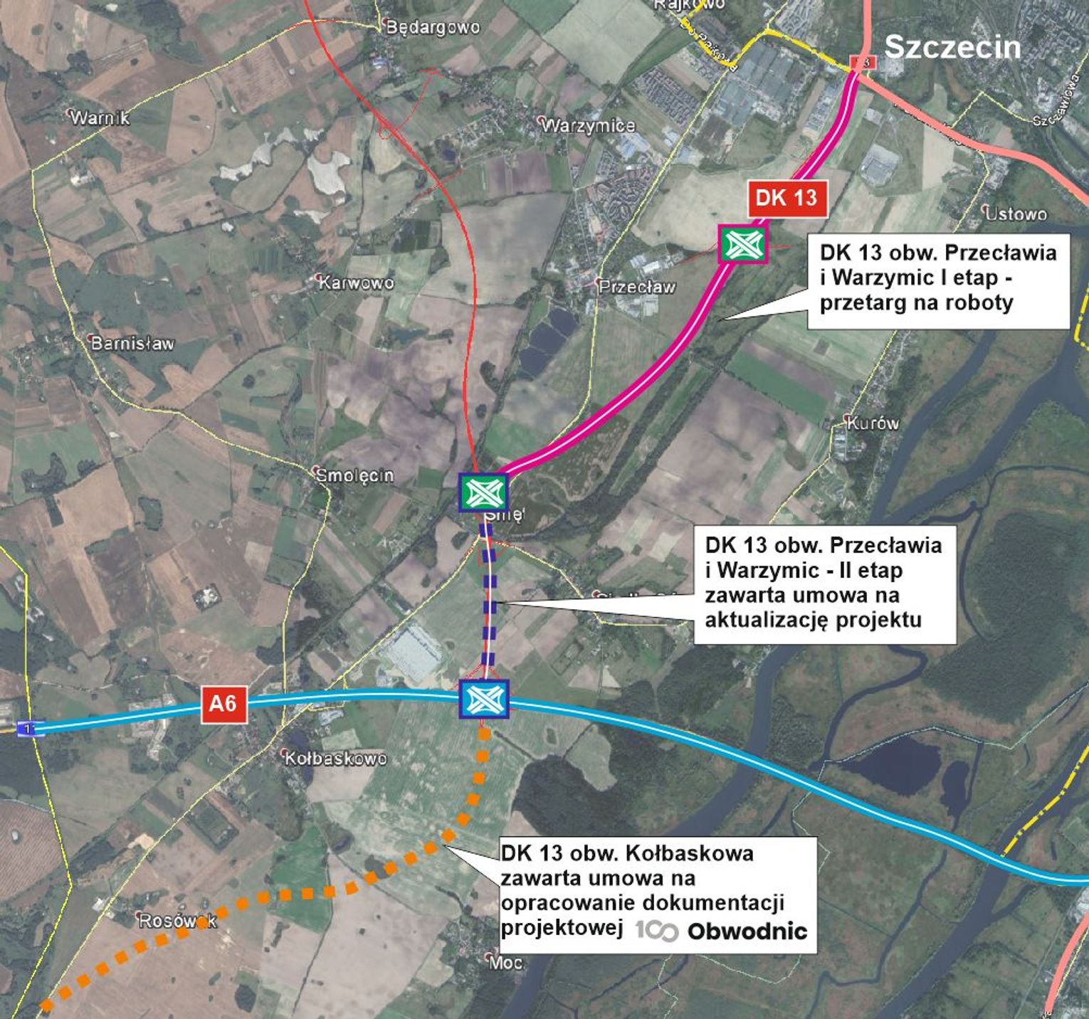 Spośród dziewięciu obwodnic przewiedzianych do realizacji w ramach tego Programu na Pomorzu Zachodnim dwie są już na etapie przetargu na zaprojektowanie i budowę (obwodnice Gryfina i Szczecinka). Dla obwodnic na DK22 - Szwecji, Wałcza, Rusinowa i Człopy umowy na dokumentację zostały zawarte w czerwcu, natomiast dla Stargardu i Złocieńca na DK20 w lipcu tego roku. Teraz do grona zadań w trakcie opracowywania dokumentacji dołączyła obwodnica Kołbaskowa.