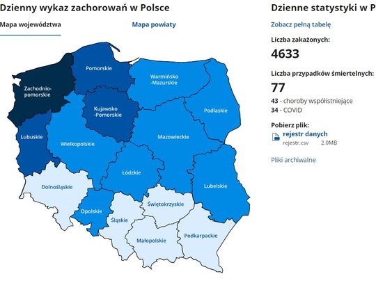 Dzisiejszy (16 grudnia 2020 r.) raport resortu zdrowia z Polski mówi o nowych zakażeniach koronawirusem z województw: