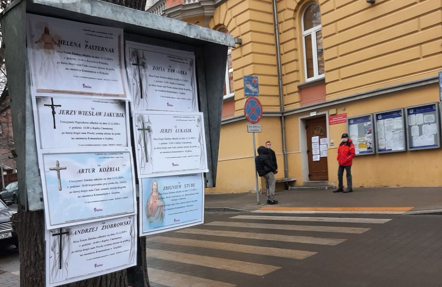 Wiele zgonów to i wiele klepsydr na tablicach, które codziennie mijamy. To też dużo pracy dla firm pogrzebowych. To także ból rodziny, przyjaciół, znajomych. Ludzie się zakażają i w bardzo krótkim okresie czasu od nas odchodzą. Jednocześnie kto próbuje dostać się do lekarza specjalisty wie, jak to w ostatnim czasie trudne.
