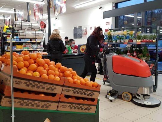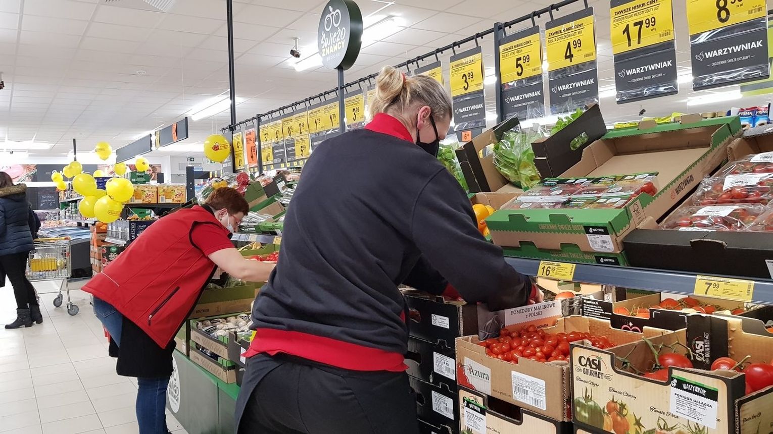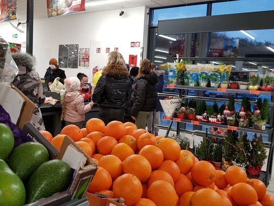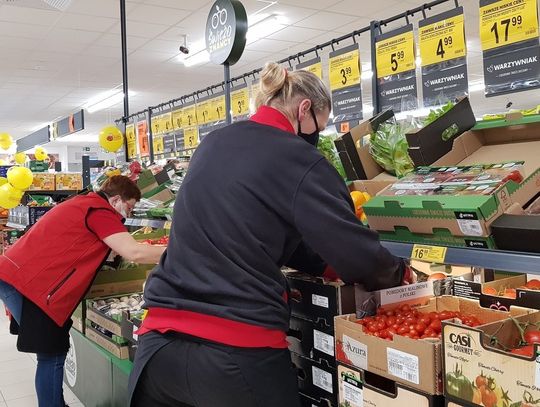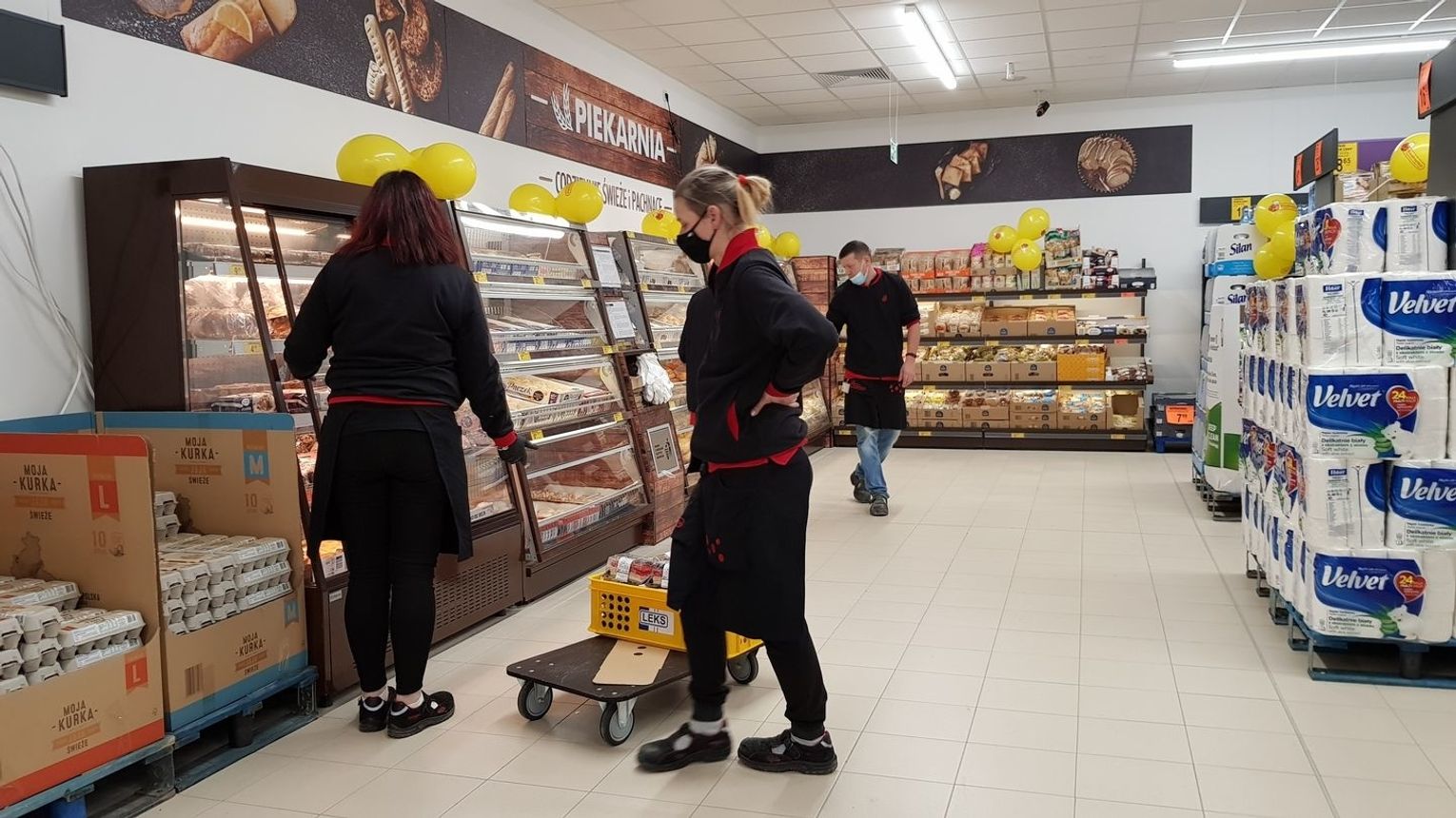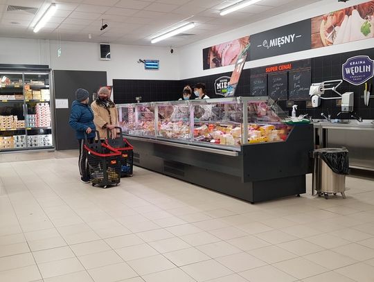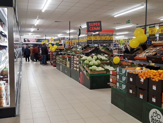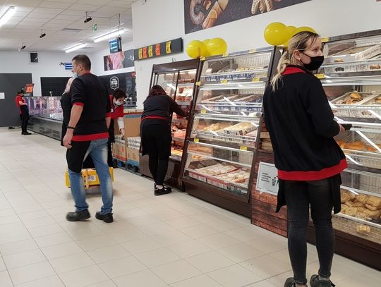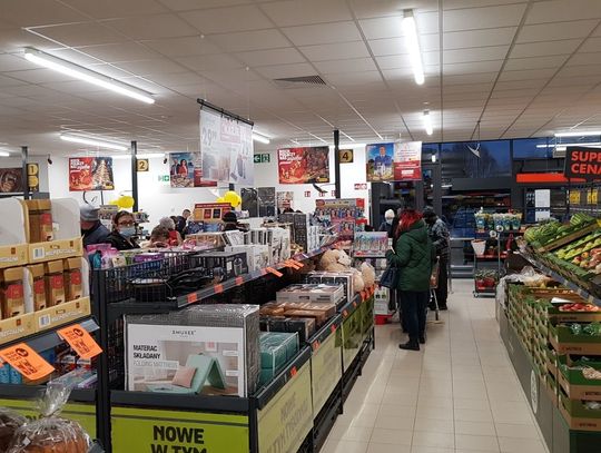 W sklepie uwijało się dziś, jak naliczyliśmy, ponad 20 osób z personelu. Nowy sklep, to też nowe miejsca pracy. Przy kasie idzie jeszcze niezbyt szybko, ale trzeba dać kasjerkom trochę czasu na rozruch.