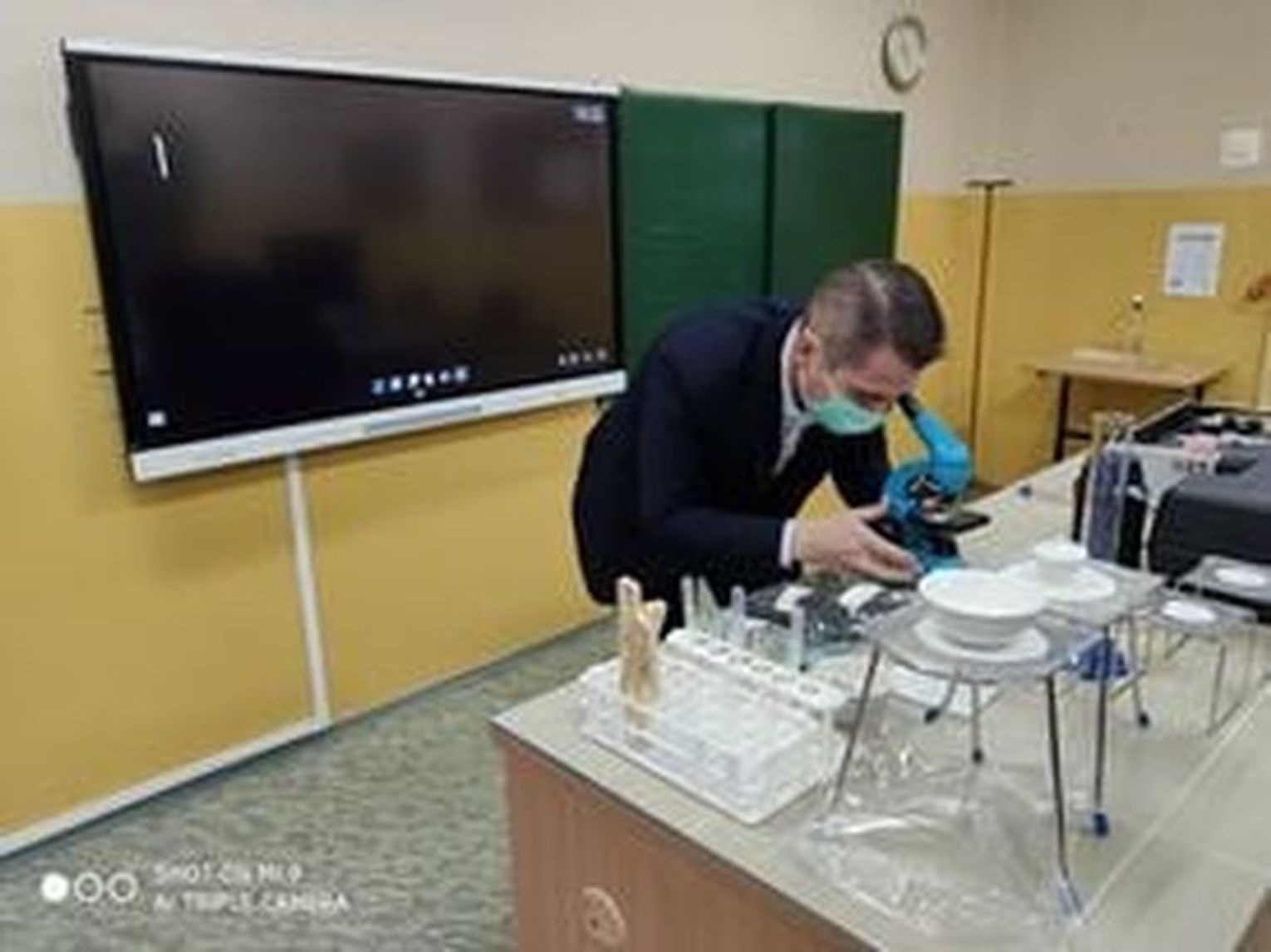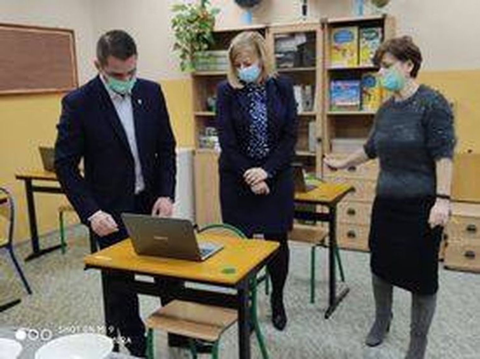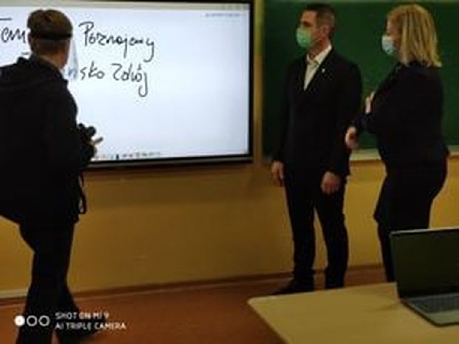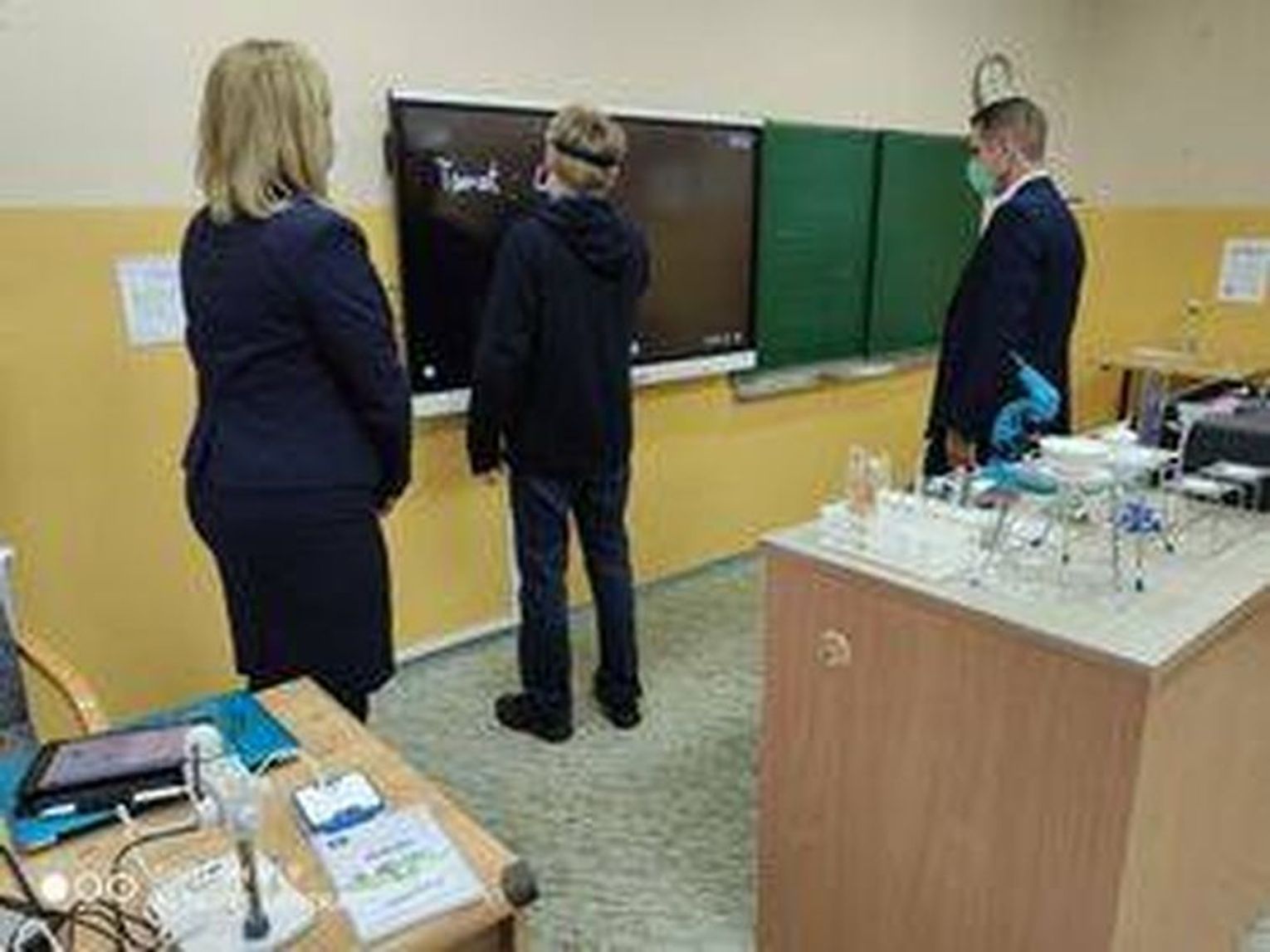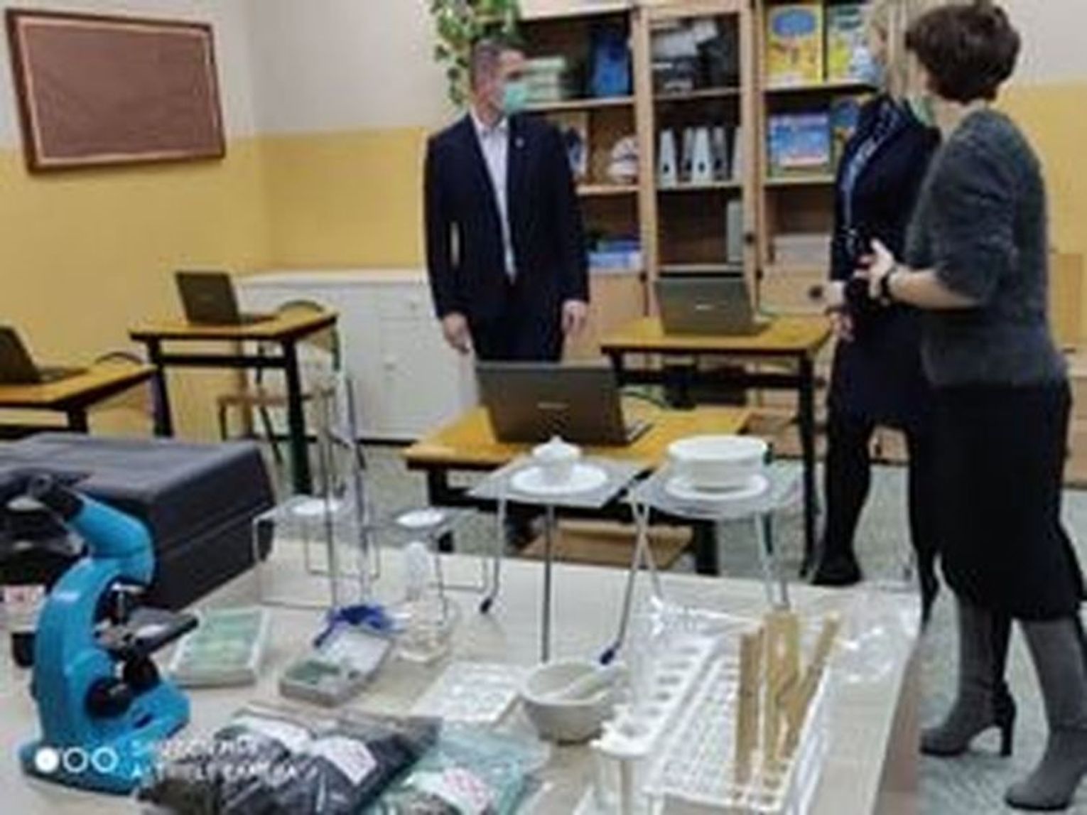 Burmistrz oraz sekretarz z wielkim zainteresowaniem i uwagą śledzili możliwości, jakie daje nowoczesny sprzęt oraz jego wykorzystanie na zajęciach szkolnych. Dzięki staraniom dyrektor Barbarze Dybczak i akceptacji projektu przez burmistrza, szkoła otrzymała dofinansowanie na ponad 66 tysięcy złotych. Korzystając z dofinansowania szkoła zakupiła pomoce tradycyjne, takie jak wyposażenie szkolnej pracowni przyrodniczej, a także nowoczesne zasoby na monitory interaktywne oraz nowoczesny sprzęt multimedialny. W ramach przyznanej kwoty powstała interaktywna pracownia fizyczna z monitorem interaktywnym i oprogramowaniem, które pozwala z łatwością przeprowadzić z udziałem uczniów dziesiątki ciekawych doświadczeń, eksperymentów i projektów badawczych.
