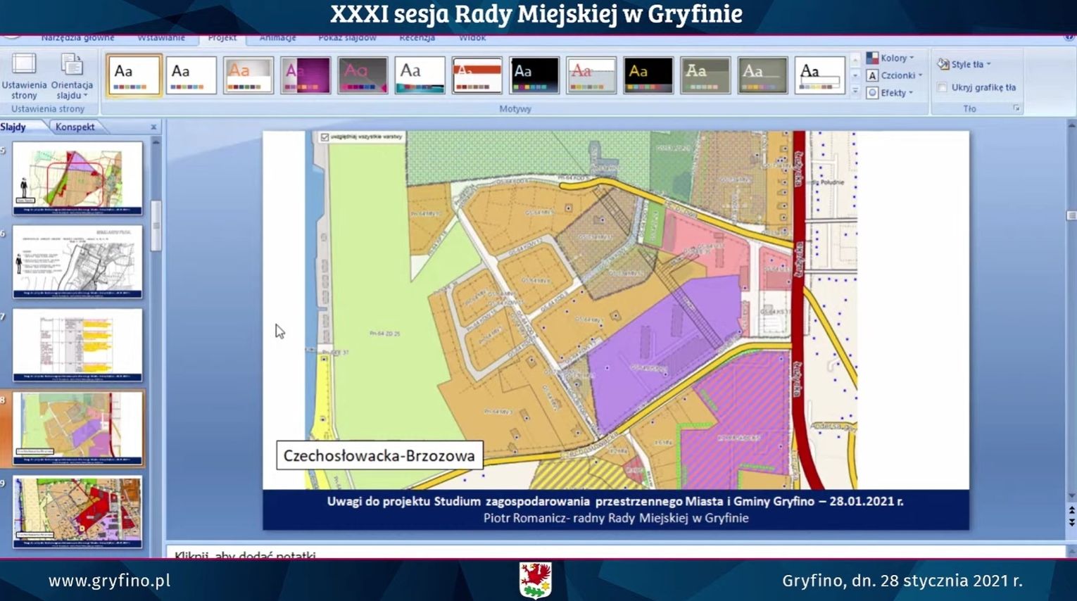 -Chciałbym powiedzieć też o północnej części gminy. Na prezentowanym przeze mnie fragmencie mapy studium widać, że niedaleko boiska Odrzanki Radziszewo mamy dużo terenów o wydanych warunkach zabudowy. Ogromny teren Starych Brynek. Okolice Czepina też jest plan miejscowy, który daje nam wiele wolnych działek. Działek gotowych do zamieszkania mamy bardzo dużo – powiedział Tomasz Miler.