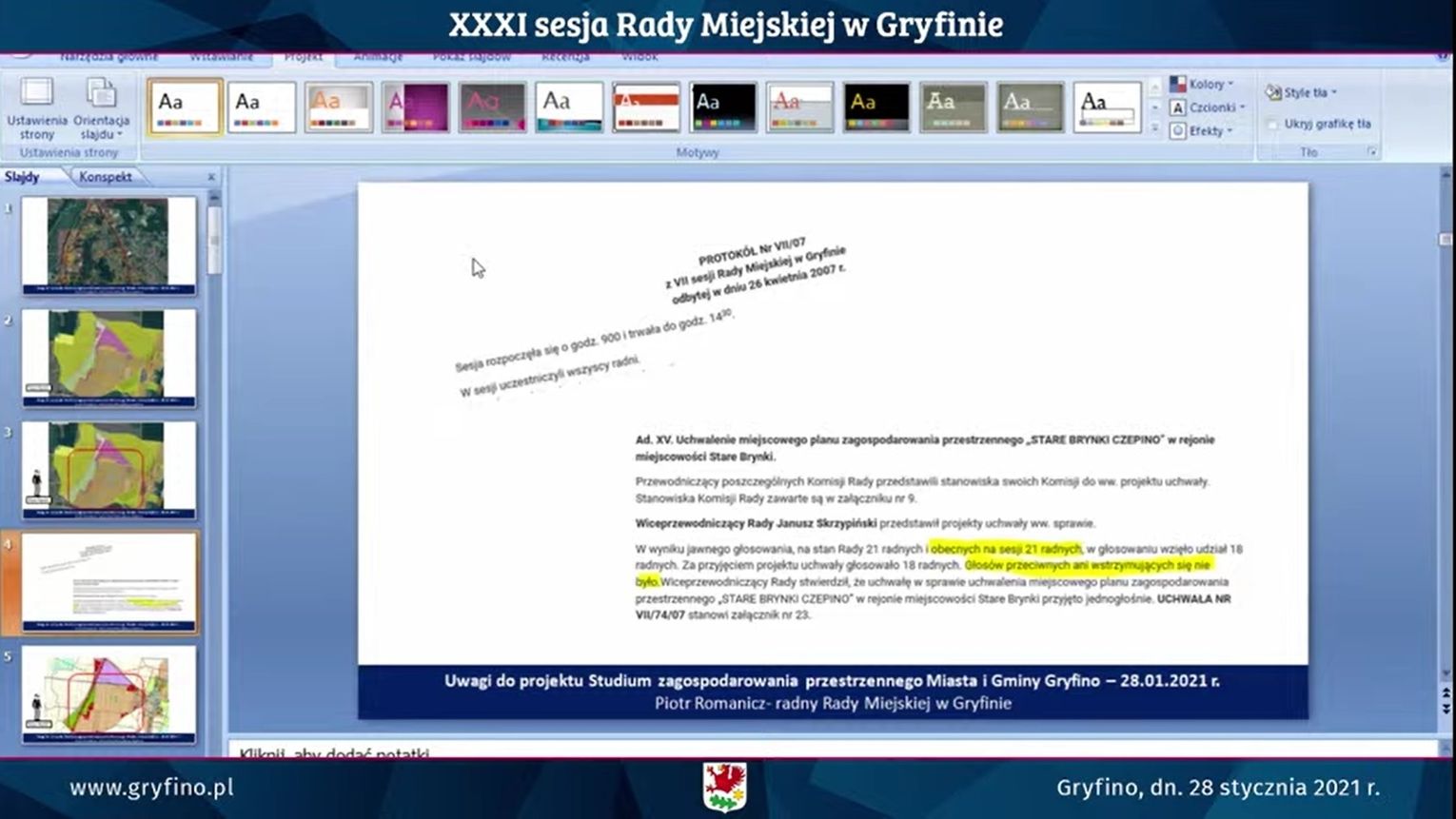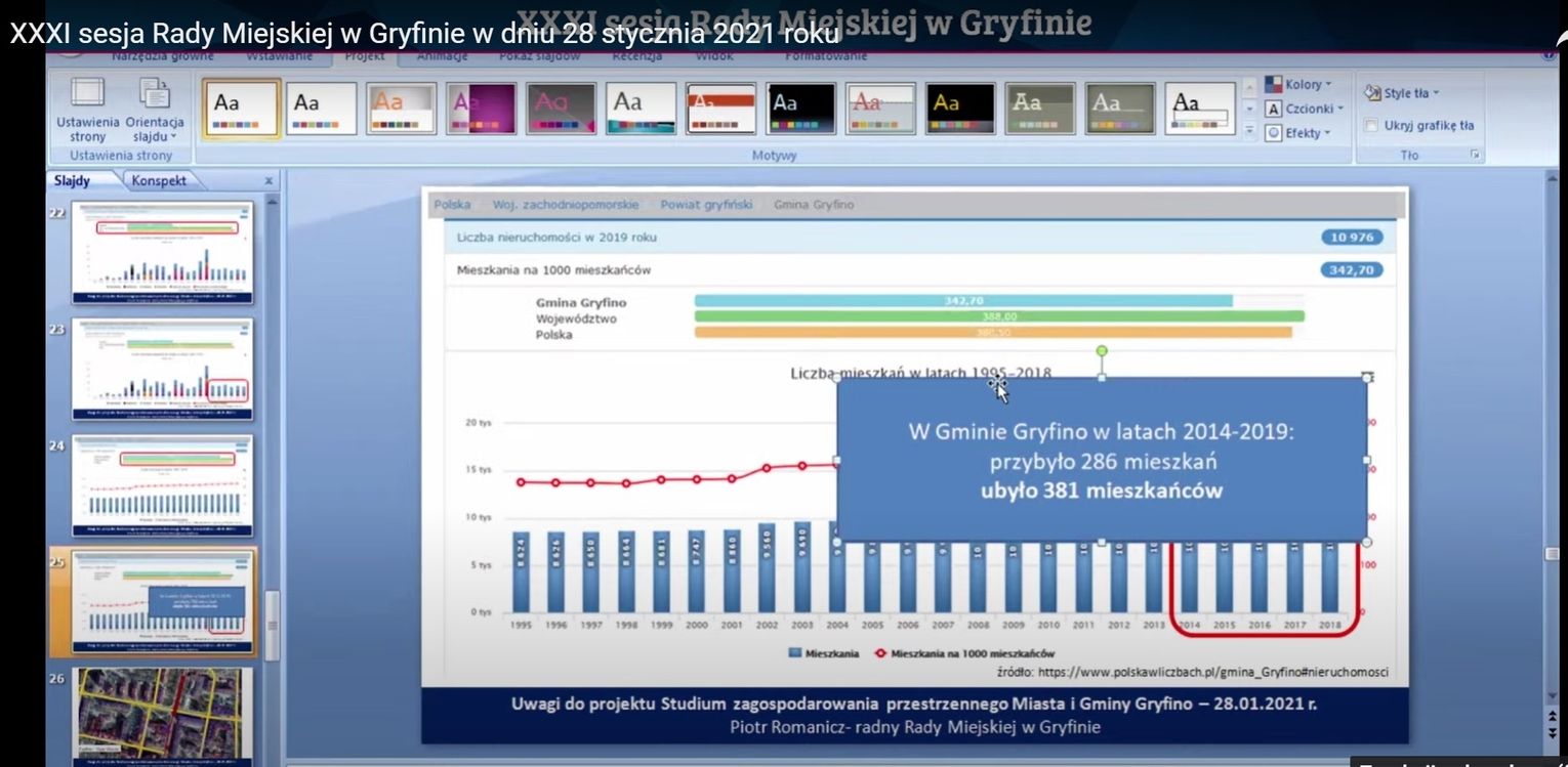 -Brak mi równego traktowania mieszkańców i elementarnego poczucia sprawiedliwości w rejonie północnym (Radziszewo, Daleszewo, Czepino, Brynki). Liczba ludności się tam zwiększa, a my zmniejszamy tereny budowlane. A w mieście liczba ludności się zmniejsza i to dosyć mocno, a my zwiększamy tereny budowlane – powiedział Rafał Guga, przewodniczący Rady Miejskiej w Gryfinie.
