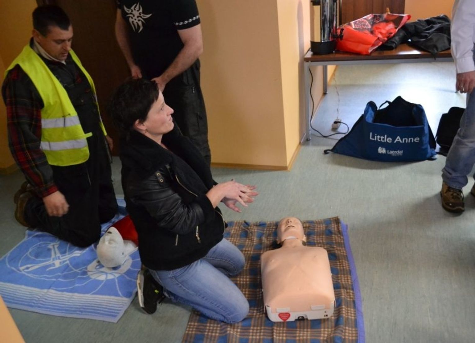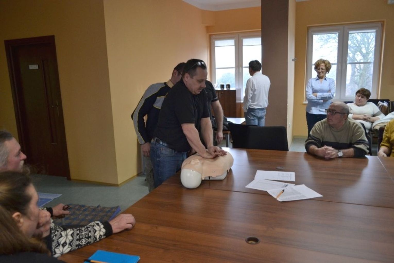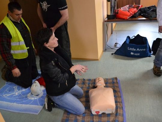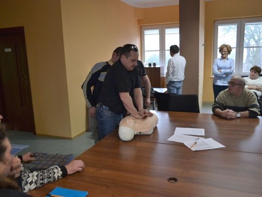 Na dobry pomysł wpadły władze Starego Czarnowa. W sali sesyjnej w Urzędzie Gminy zorganizowano szkolenie z podstaw pierwszej pomocy. Była część teoretyczna, ale najwięcej emocji wzbudziła część praktyczna. Uczestnicy warsztatów ćwiczyli na fantomach, a potem z wykorzystaniem statystów.
