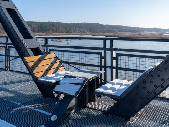 Zakończono malowanie konstrukcji mostu, odrestaurowano dwa przyczółki mostu, ścieżka pieszo-rowerowa i miejsce odpoczynku z ławami i stojakami - też gotowe. Na tarasie widokowym zostały roboty wykończeniowe i ogólna kosmetyka: wykonanie napisów, znaków, montaż pulpitów edukacyjnych etc. Następnie potrzebny będzie czas na uzyskanie wszelkich niezbędnych odbiorów i zgód formalnych. Jak zapewnia inwestor – Zespół Parków Krajobrazowych Województwa Zachodniopomorskiego – obiekt zostanie oddany do użytku najpóźniej w maju br.
