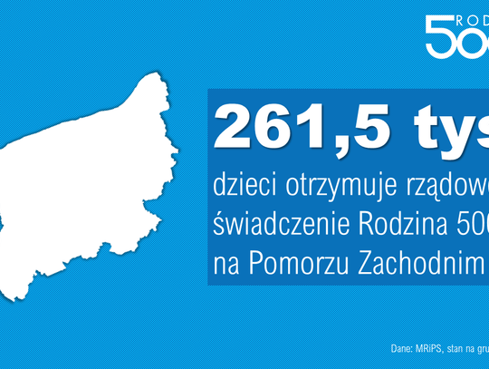 Podczas całego okresu trwania rządowego programu Rodzina 500+ na Pomorzu Zachodnim świadczeniem objęto 261,5 tys. dzieci. Do rodzin w Zachodniopomorskiem trafiło 5,3 mld zł wsparcia.