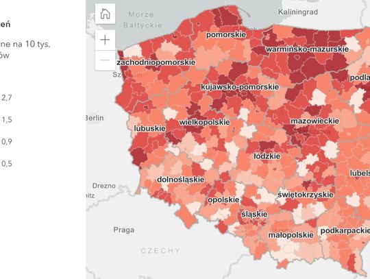 Podobny jak ostatnio jest w powiecie gryfińskim współczynnik zakażeń na 10 tys. mieszkańców. Dzisiaj wynosi 1,96. W związku z tym na mapie zakażeń w Polsce nasz powiat zaznaczony jest nieco ciemniejszym kolorem.