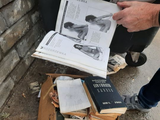 Kiedyś książki się szanowało, teraz wystawia na śmietnik. Ktoś mógłby z tego skorzystać, zwłaszcza że jedna z lektur poświęcona była ćwiczeniom rehabilitacyjnym. Jednak wystawienie kartonu na takie warunki atmosferyczne, na deszcz powoduje, że te książki się niszczą - mówi gryfinianin.