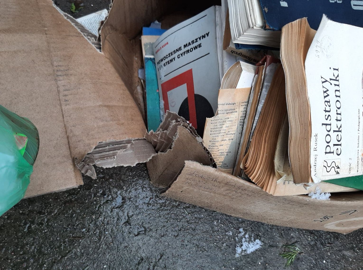 Książki wyrzucone na śmietnik