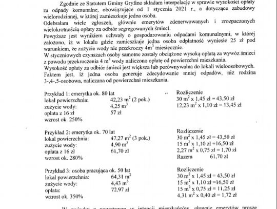 Natomiast już pod koniec sesji przewodniczący klubu rannych GiS Marcin Para zakomunikował, iż jego klub planuje złożyć wniosek zmiany w uchwale określającej metody ustalania opłat za gospodarowanie odpadami komunalnymi, postulujący podniesienie limitu zużycia wody. Taki wniosek wpłynął z limitem 5m3.