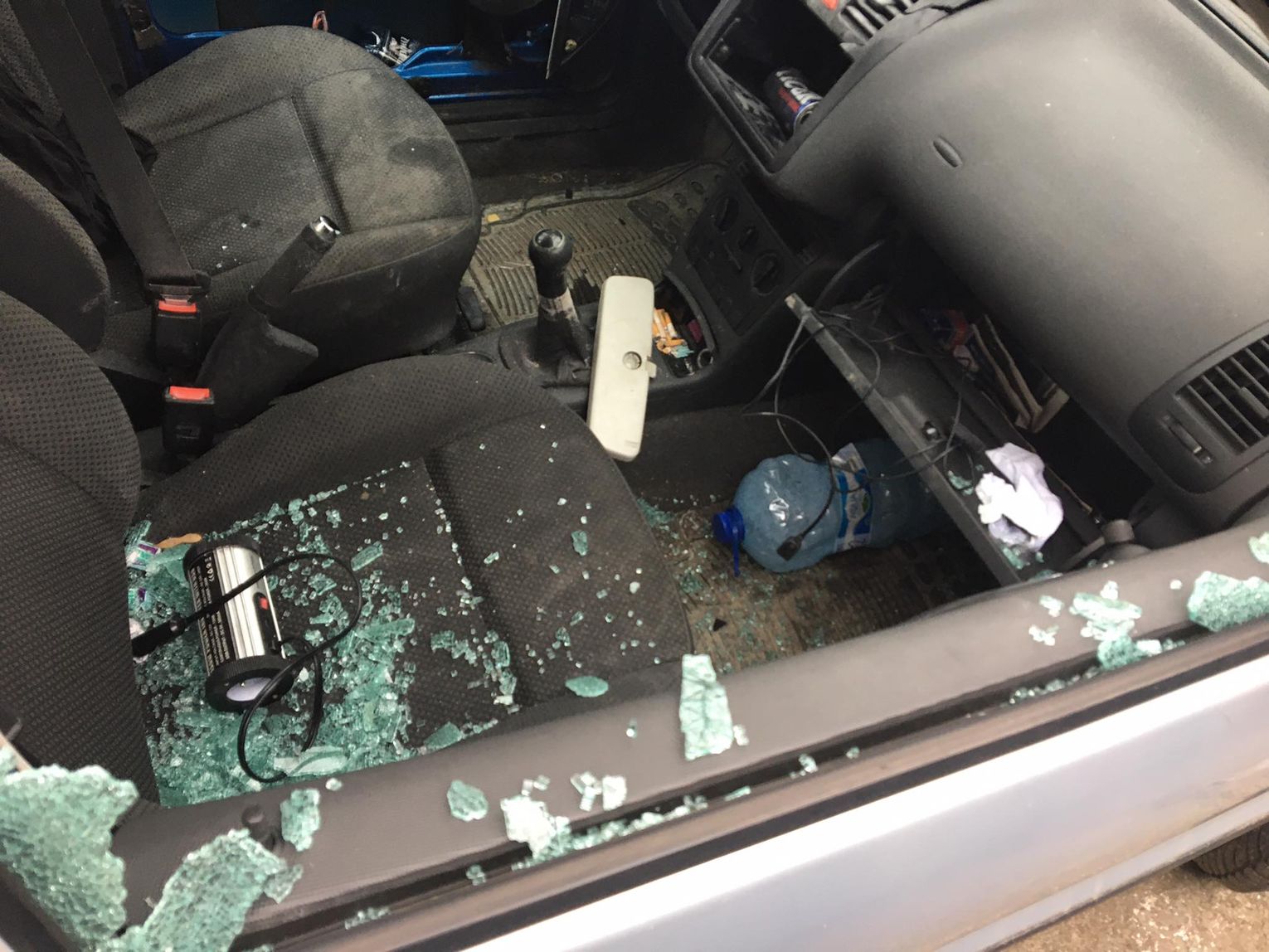 W volkswagenie polo nieznany sprawca wybił boczną szybę.