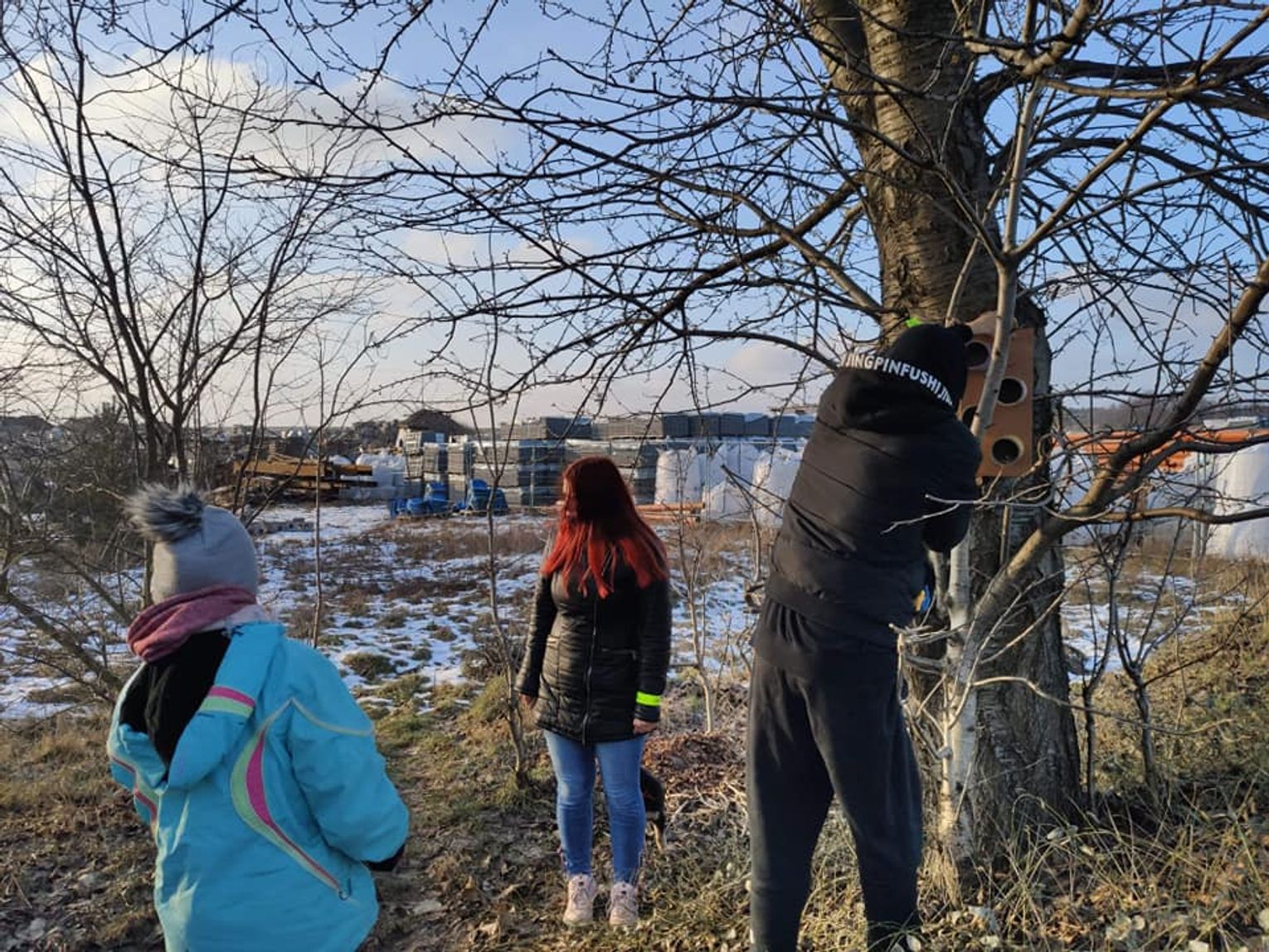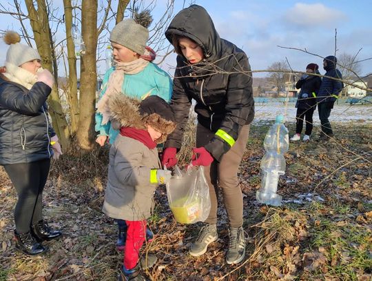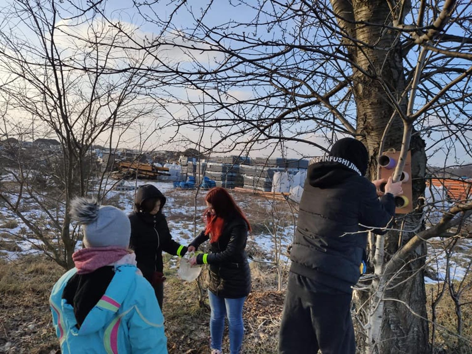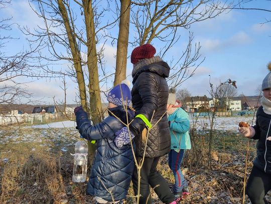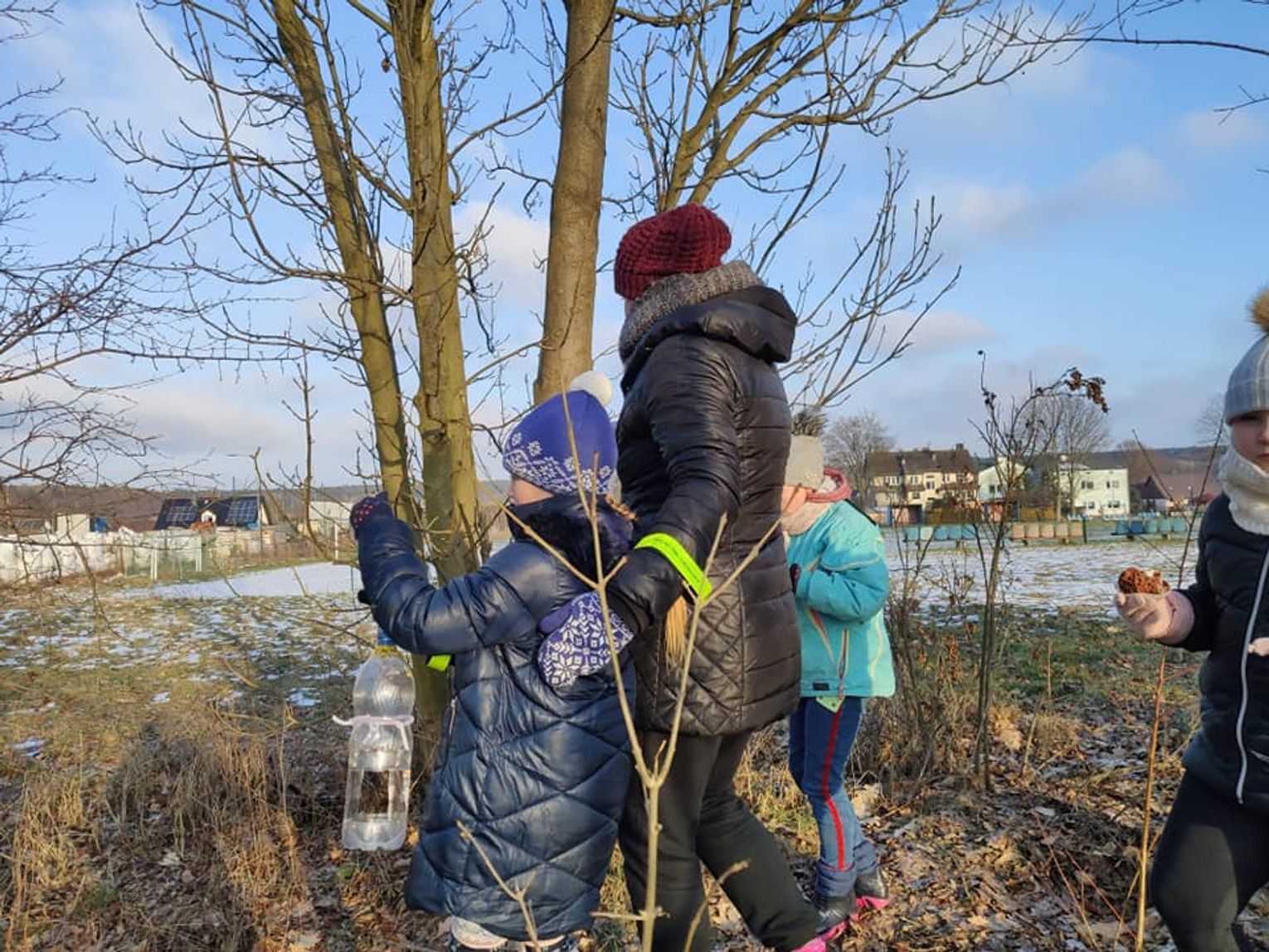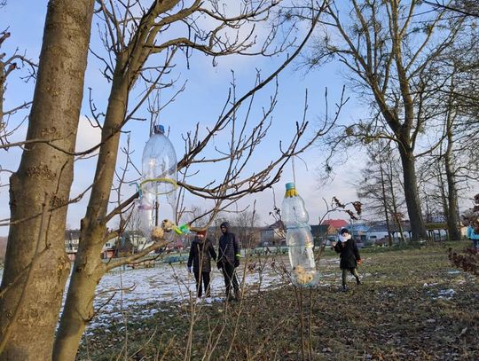 Po odwiedzinach osób potrzebujących i przekazania im świątecznych prezentów nadszedł czas na przygotowanie stołówki dla ptaków. Wolontariusze zrobili oryginalne karmniki i kulki smakowe z ziarenkami i smalcem.