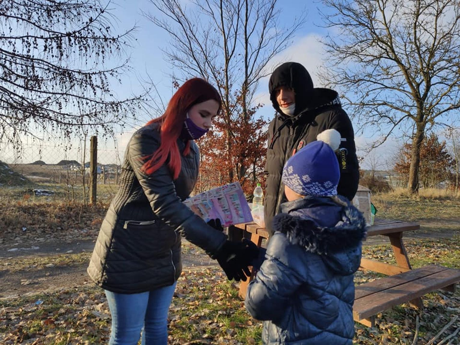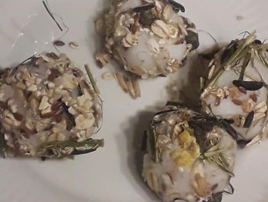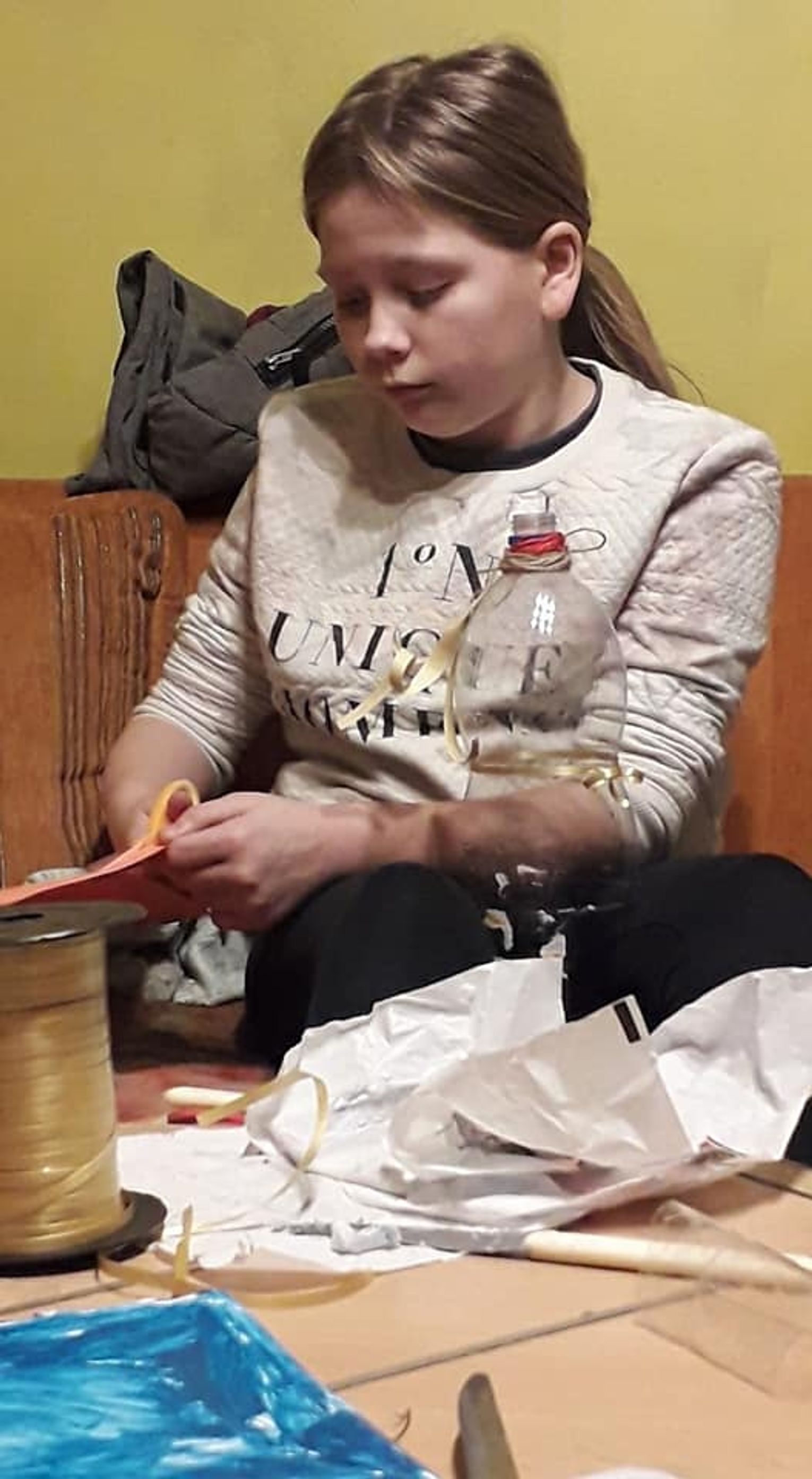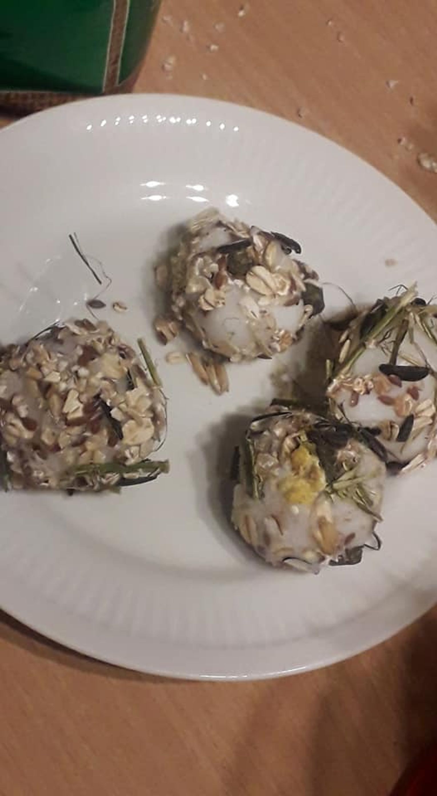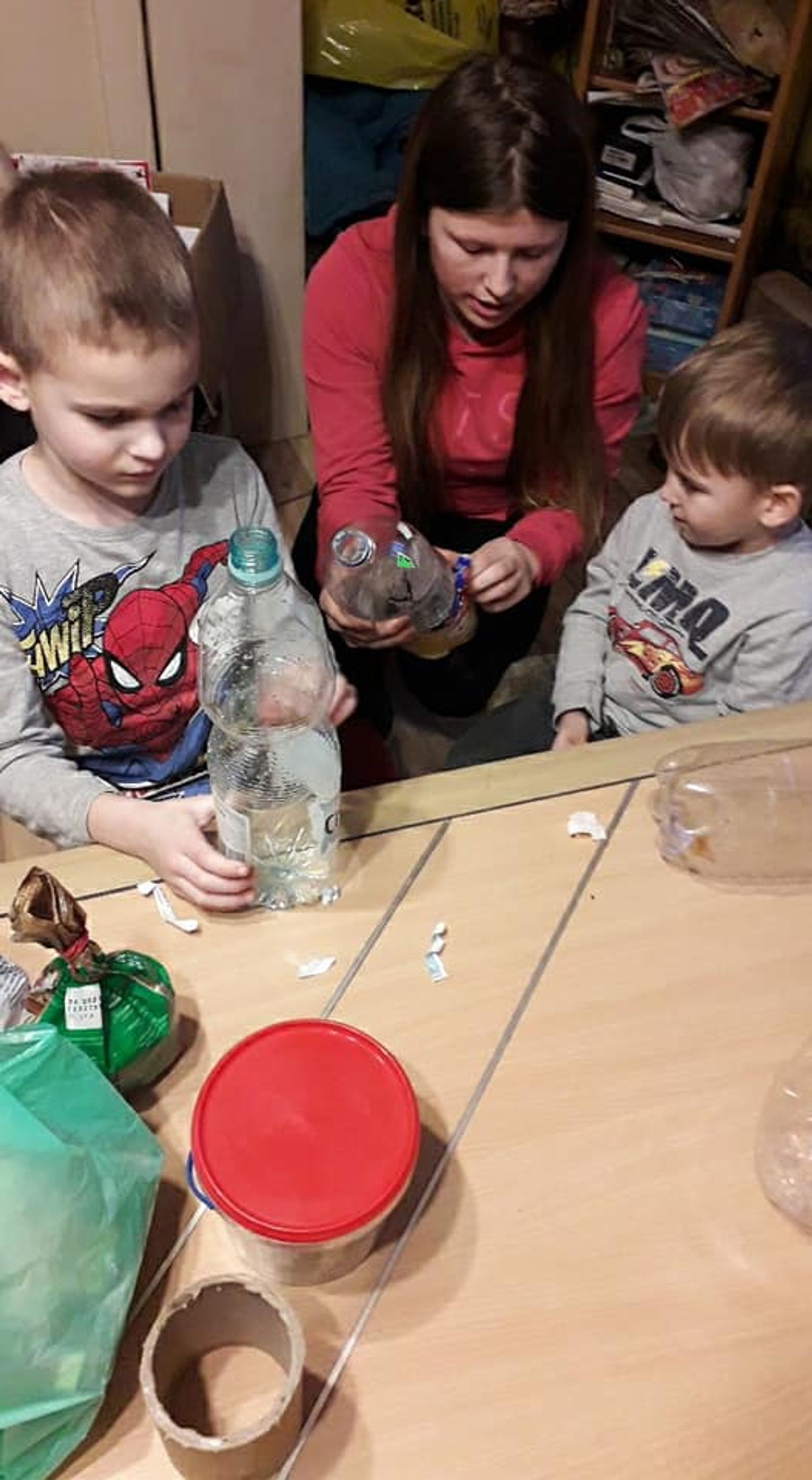 Po odwiedzinach osób potrzebujących i przekazania im świątecznych prezentów nadszedł czas na przygotowanie stołówki dla ptaków. Wolontariusze zrobili oryginalne karmniki i kulki smakowe z ziarenkami i smalcem.