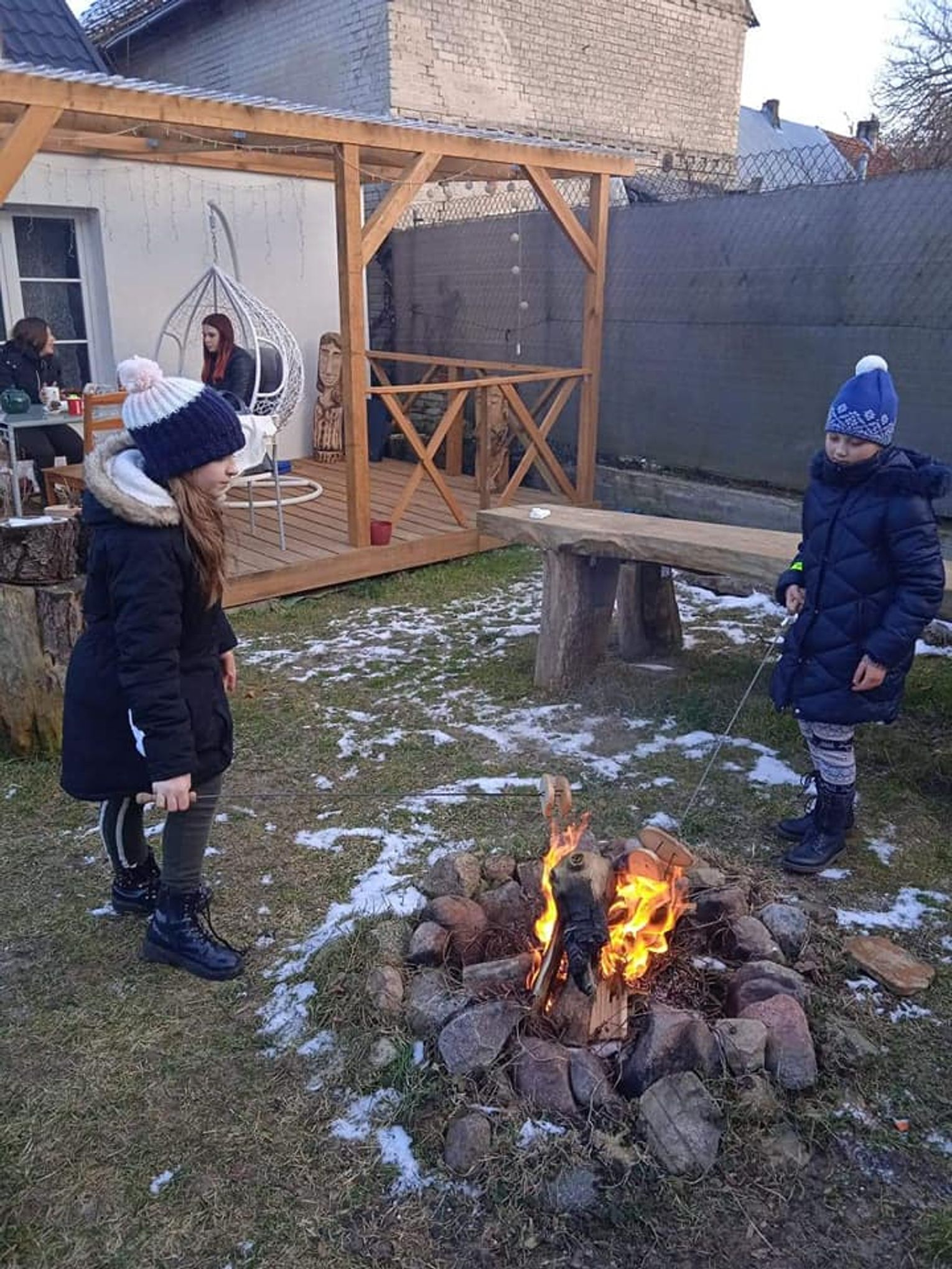 Po wykonaniu zaplanowanych zadań nadszedł czas na przyjemności. Nie mogło zabraknąć ogniska z ciepłą herbatką i smakowitymi mufinkami. Wręczono nagrody za strój karnawałowy oraz upominki od Stowarzyszenia Polites za działalność.