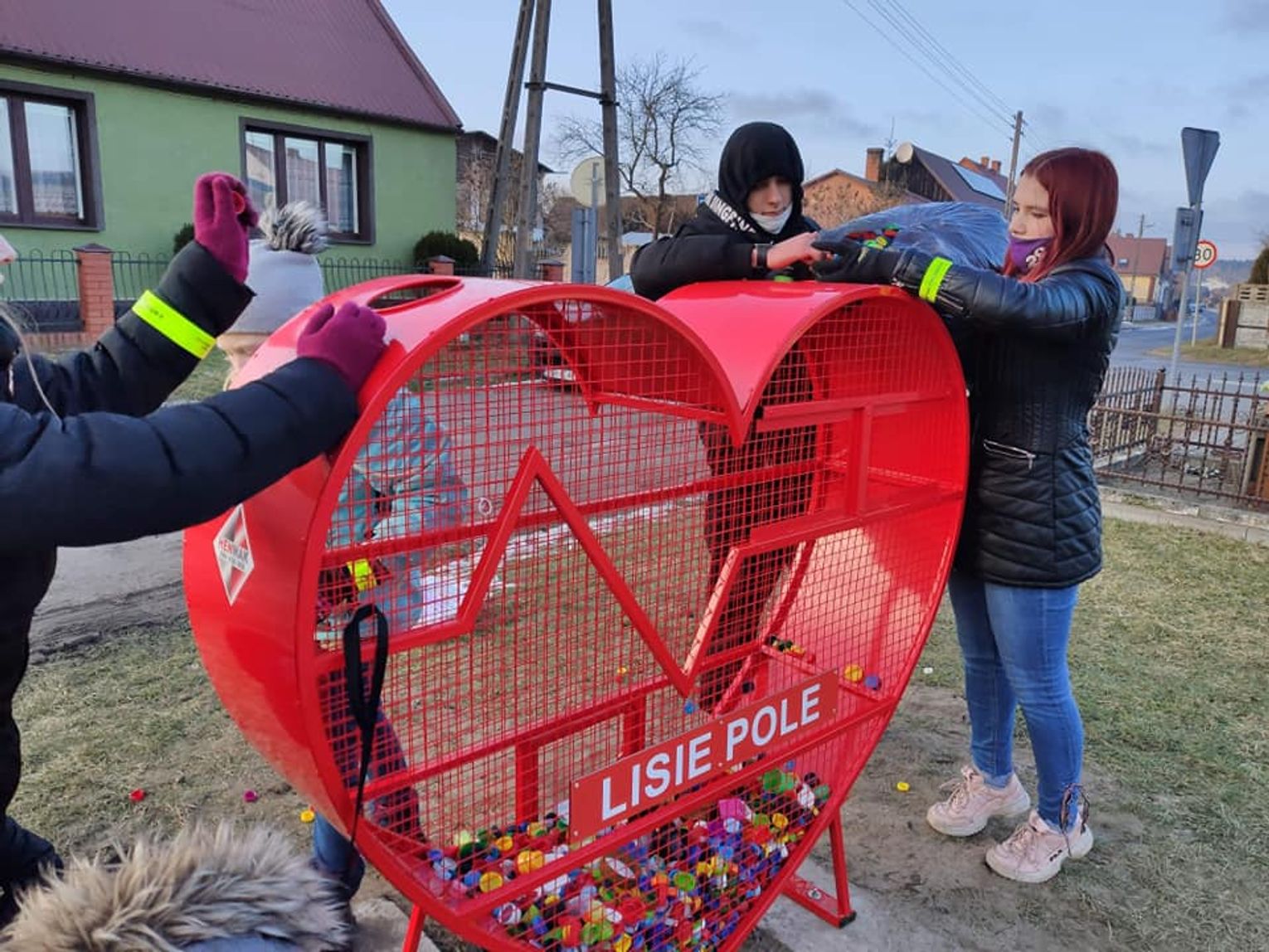 Następnie do opróżnionego Serca udało się wrzucić uzbierane wcześniej nakrętki i wypełnić Serce prawie do połowy. Pomysł powstania serca już dawno zrodził się u Sylwii Szuszkiewicz. Nakrętki zostawiano u sołtysa Macieja Lisieckiego lub zakładzie fryzjerskim