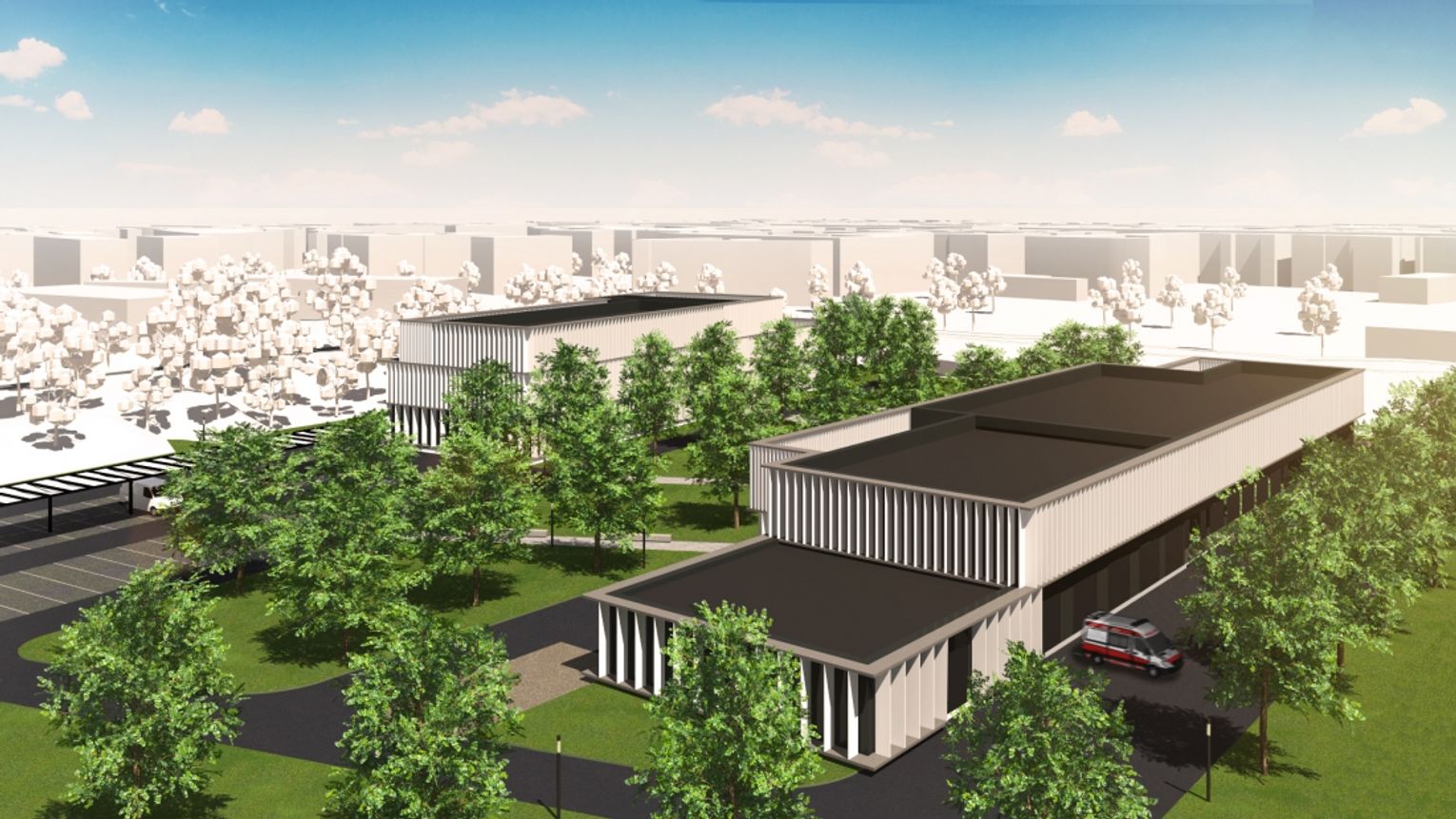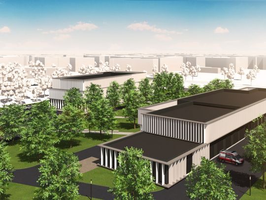 W fotogalerii wizualizacja obiektu i zdjęcie gdzie budynek zostanie usytuowany w przestrzeni miejskiej.