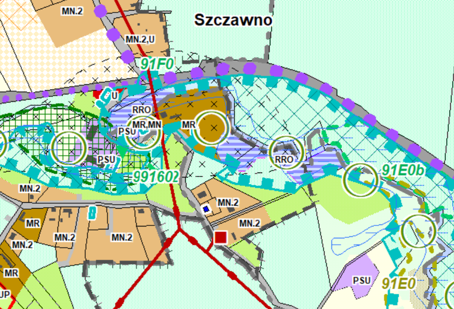 Sprawdzamy w Systemie Informacji Przestrzennej (gryfino.e-mapa.net) i… nie wszystko się zgadza. Nieruchomość Mieczysława Sawaryna nie graniczy bezpośrednio z wymienionymi przez niego działkami. Graniczy z działkami rolniczymi z możliwością zalesiania.