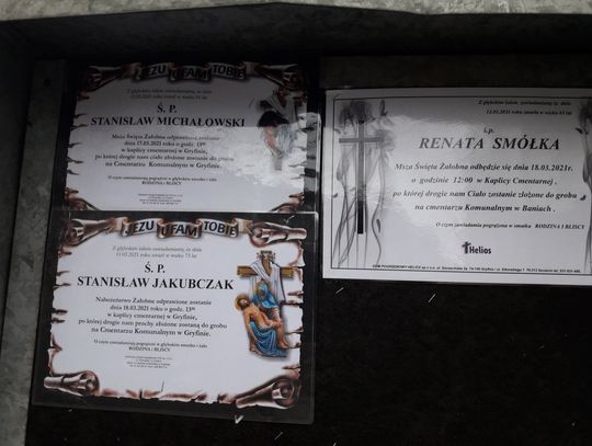 Szczegóły dotyczące ostatniego pożegnania na klepsydrach w fotogalerii.