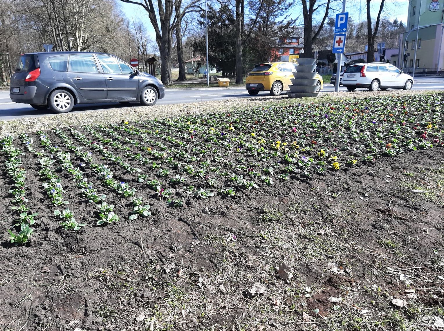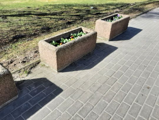 Żywe kwiaty pojawiły się na rabatach niedaleko siedziby Komendy Powiatowej Państwowej Straży Pożarnej w Gryfinie. Inne trafiły do donic na chodnikach.