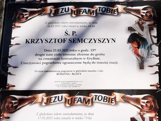 Szczegóły dotyczące ostatniego pożegnania na klepsydrach w fotogalerii.