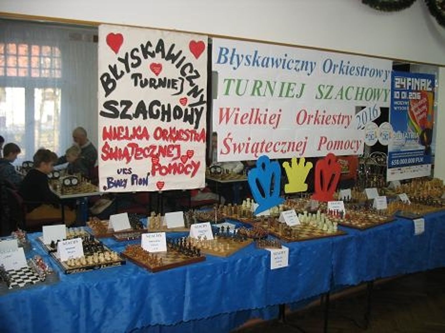 Cały dochód z wpisowego powędrował do puszki WOŚP. Ponadto, odbyła się druga w historii tych turniejów, mini-licytacja „orkiestrowo-szachowych” gadżetów. Wśród licytowanych przedmiotów między innymi, pamiątki ufundowane przez – firmę SILVER Trofea Sportowe p. Jarka Warchoła ze Szczecina oraz Sztab Główny WOŚP. Krótka i dynamicznie przeprowadzona licytacja przyniosła nadspodziewane wyniki. Ogółem do puszki trafiło z niej, około pół tysiąca złotych.