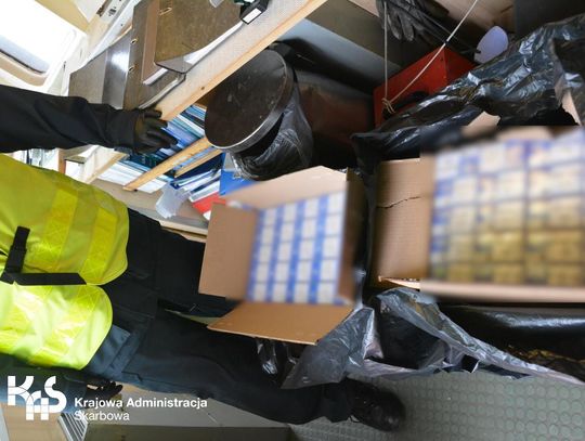 Celnicy oprócz farb w puszkach znaleźli dwa foliowe czarne worki, w których znajdowało się 20 tys. sztuk papierosów bez znaków akcyzy.