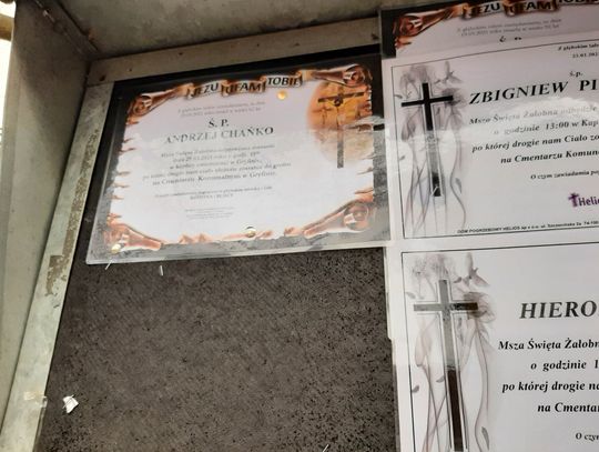 Bywa, że klepsydra naklejana jest na klepsydrę. Tak jak dziś na jednej z tablic w Gryfinie.