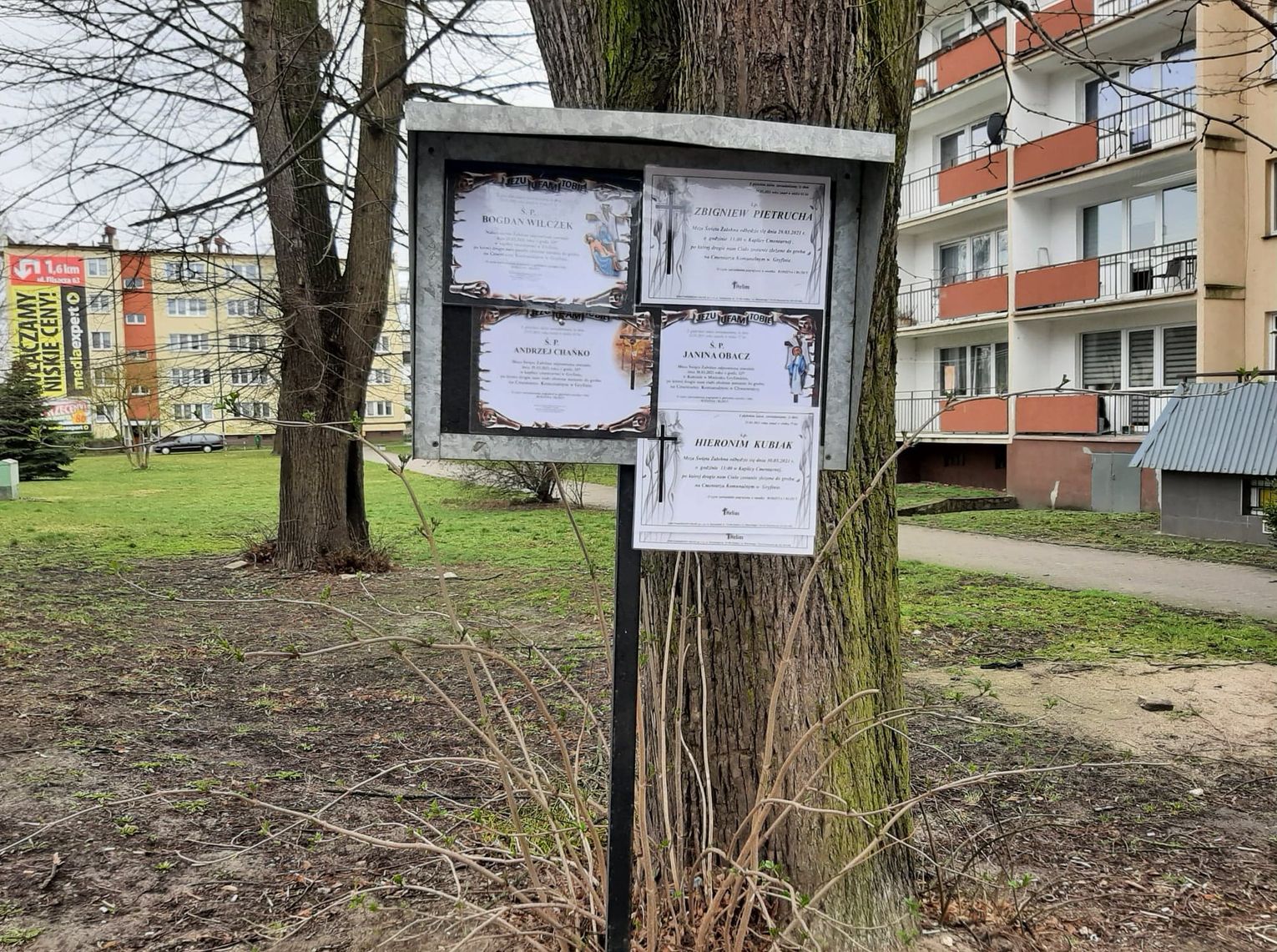 Ja chcę wiedzieć ile kosztuje wieszanie na taśmach klejących i doczepianie jednych na drugich. I ILE ZDZIERAJĄ ZA INFORMACJĘ O ZMARLYCH MIESZKAŃCACH?