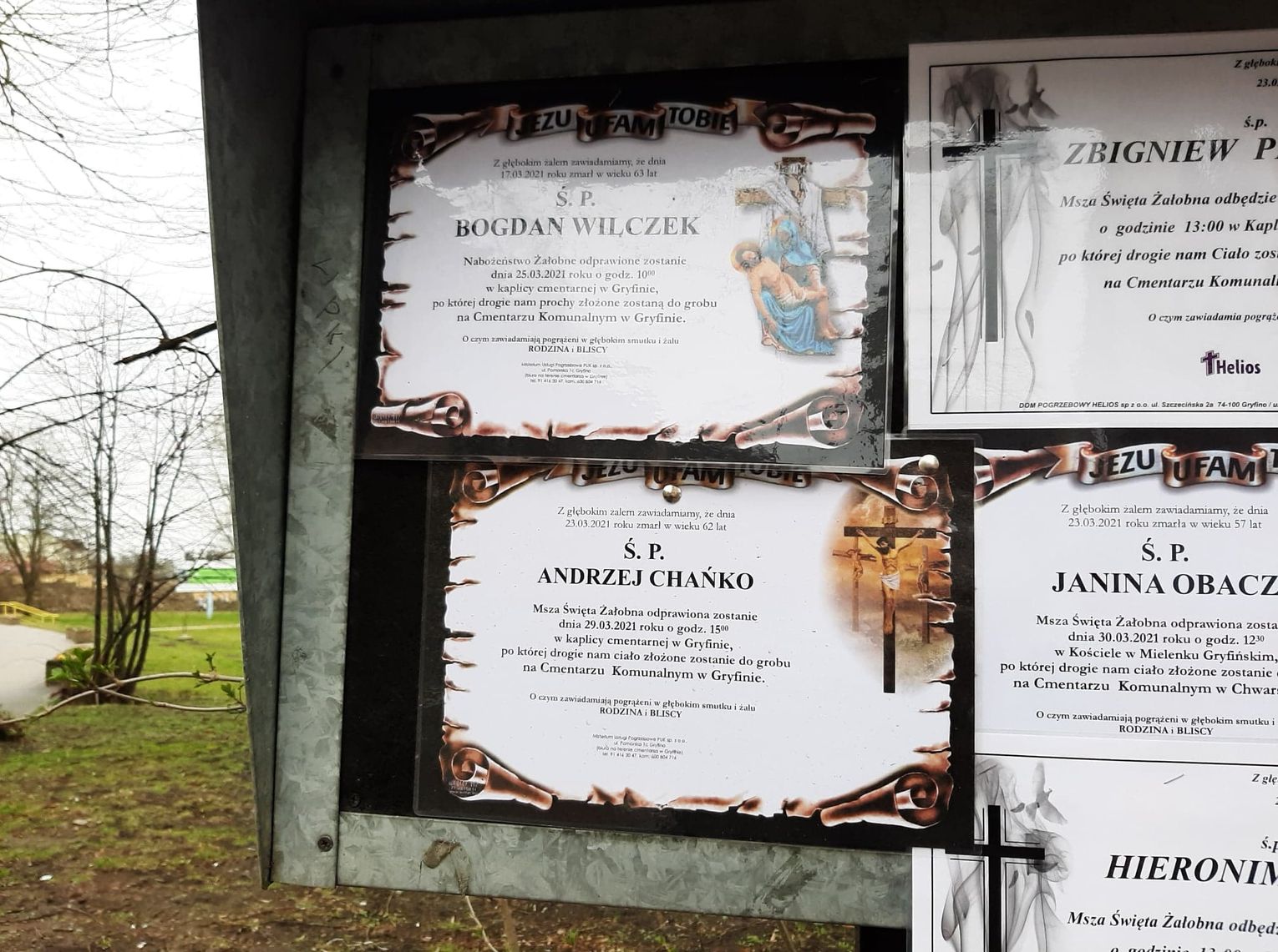 Dziś w poniedziałek 29 marca 2021 r. pojawiły się nowe klepsydry na tablicach informacyjnych w Gryfinie. Jest też, od pewnego czasu, nowa tablica w parku. Jednak nie wszystkie pomniejszone znajdują się na każdej tablicy.