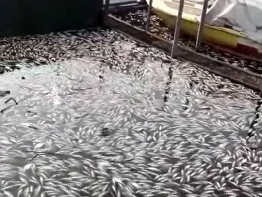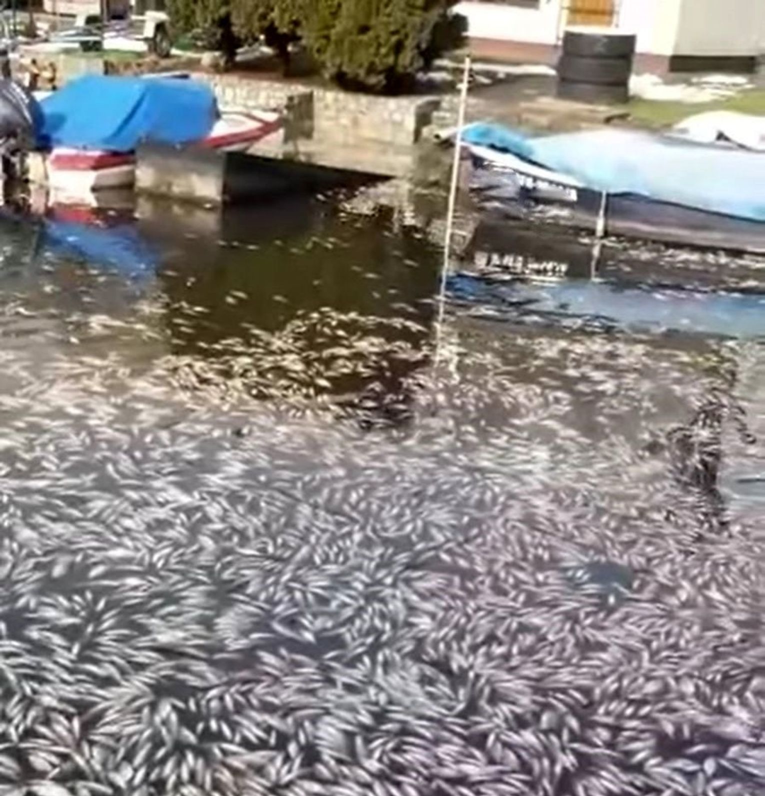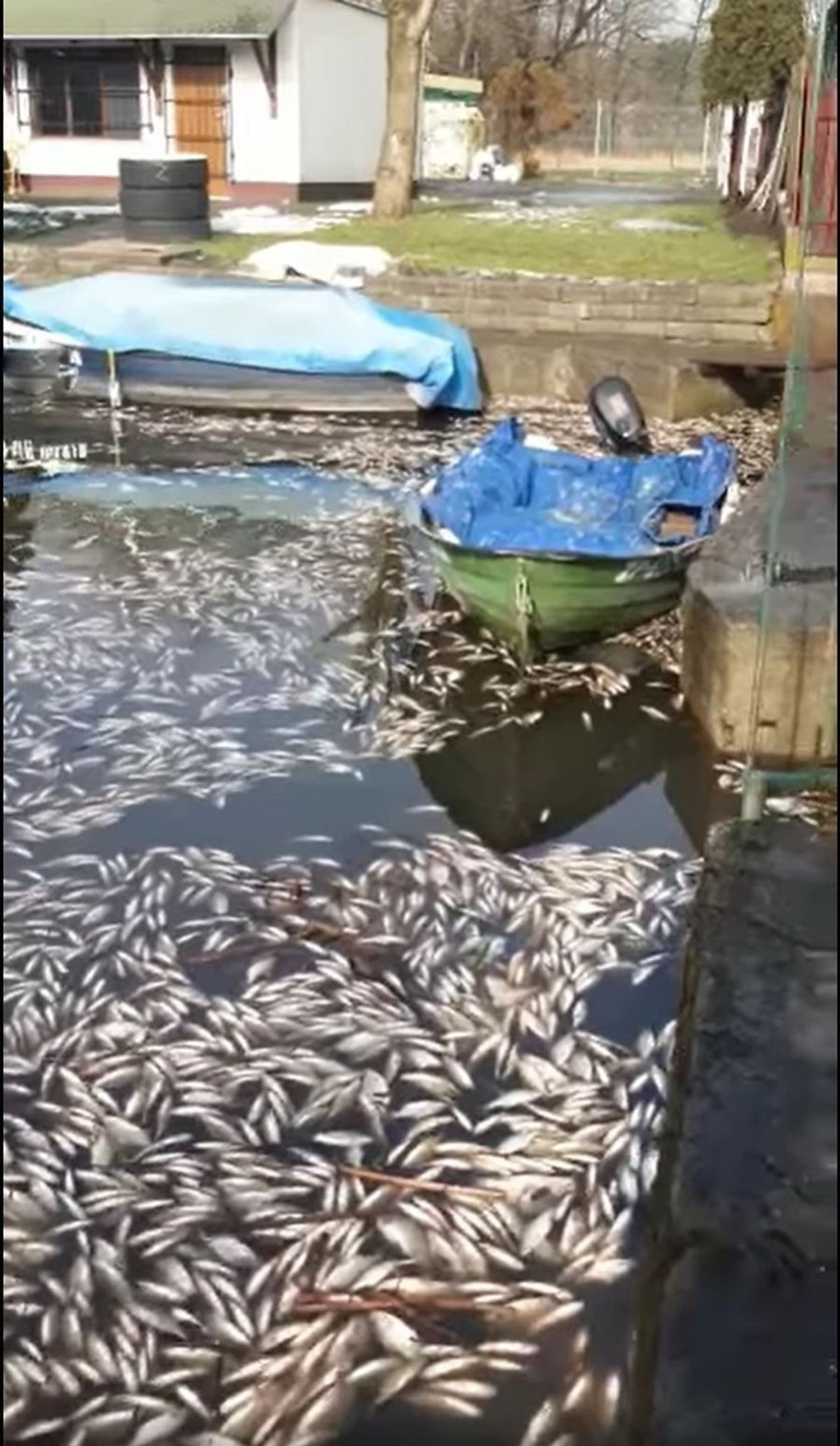 Po odwilży i roztopieniu lodu na powierzchni wody w ciągu kilku godzin śnięte ryby zostały wyłapane przez kormorany. Okazano jednocześnie nagranie z monitoringu, prezentujące żerowanie kormoranów.