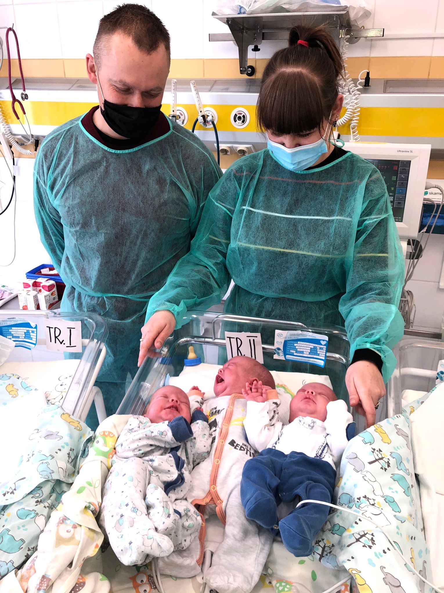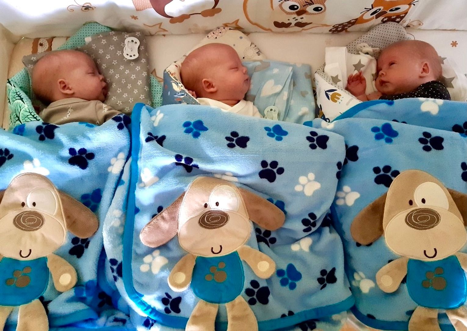 Chłopcy przyszli na świat 23 lutego, zgodnie z planem w 33. tygodniu ciąży. W przypadku wieloraczków to wiek ciążowy, który uznaje się za bezpieczny i optymalny do jej rozwiązania. Pierwszy urodził się Fabian z masą urodzeniową 1.920 gr. Minutę później na świat przyszedł Kasjan ważący 1.750 gr. Jako ostatni urodził się Marcel, który ważył 1.790 gr. Chłopcy urodzili się w dobrym stanie. Tylko u jednego z nich wystąpiły zaburzenia oddychania wymagające wprowadzenia na kilka dni wspomagania oddechowego. Po kilku tygodniach pobytu na Oddziale Intensywnej Terapii i Patologii Noworodka chłopcy zostali wypisani do domu w dobrym stanie, a masa każdego z nich przekroczyła 3 kg.