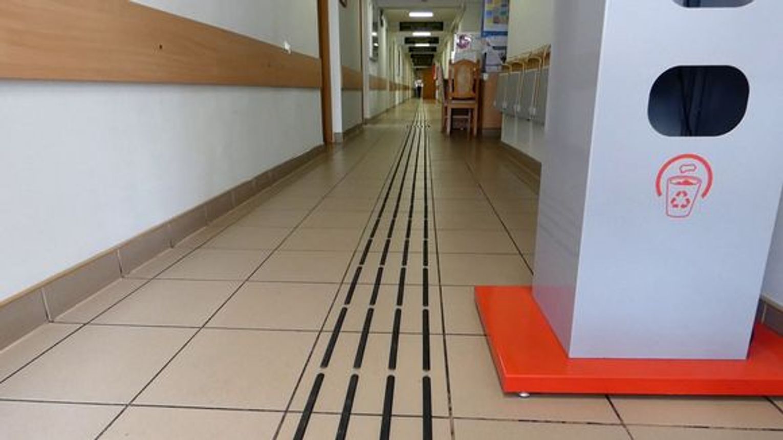- na podłodze umieszczono linie prowadzące wraz z polami uwag,